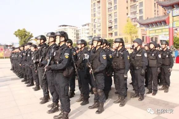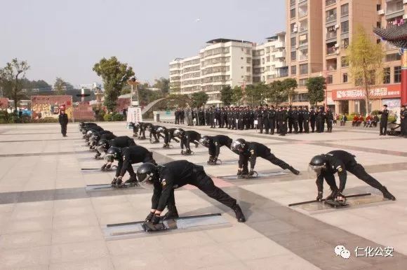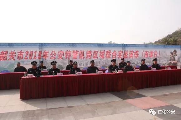 11月23日,2018年韶关市公安特警跨区域联合实战演练仁化、始兴、南雄片区在南雄市雄州公园广场举行。来自仁化、始兴、南雄三支特警队伍同场竞技、相互交流,仁化县局副局长罗金城、特警大队长邹建雄带领仁化特警代表队参加了此次演练。