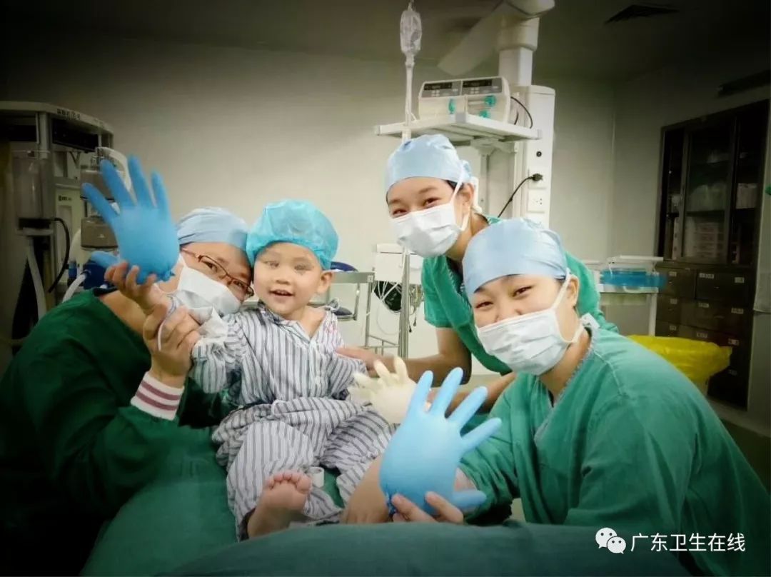 该名患儿一开始紧张得不肯进手术室,护士姐姐们讲故事、做手套娃娃,接触患儿的心理恐惧,让他安安全全地接受手术。