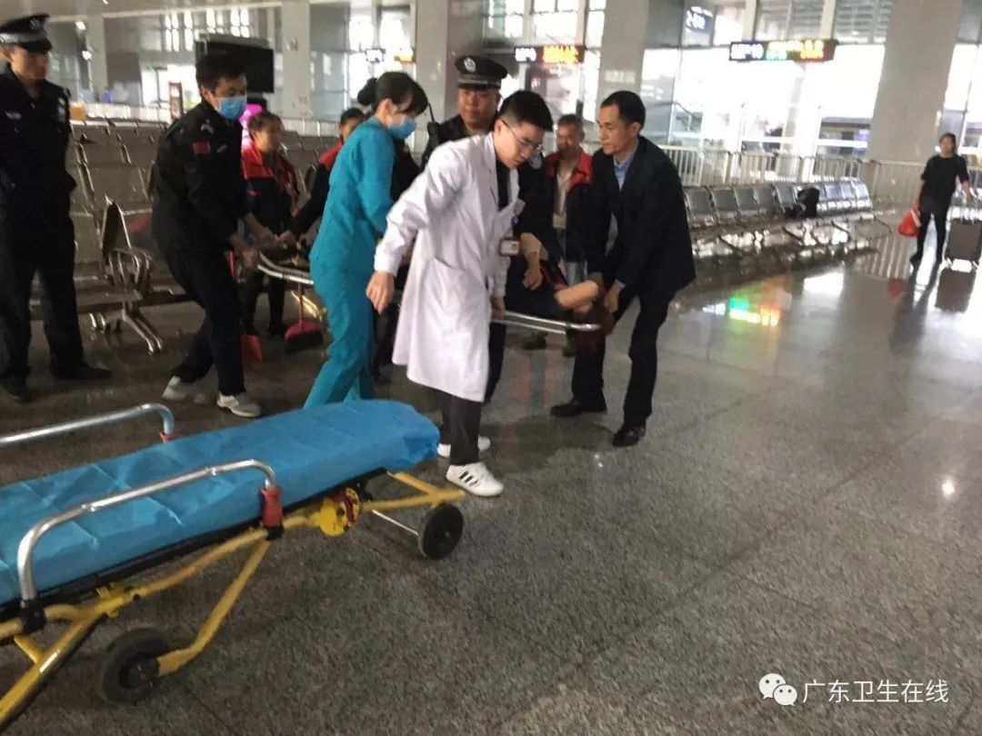 大年三十,一名旅客在东莞火车东站等候火车时不慎摔倒,导致腰部爆裂性骨折,120紧急出车救援。