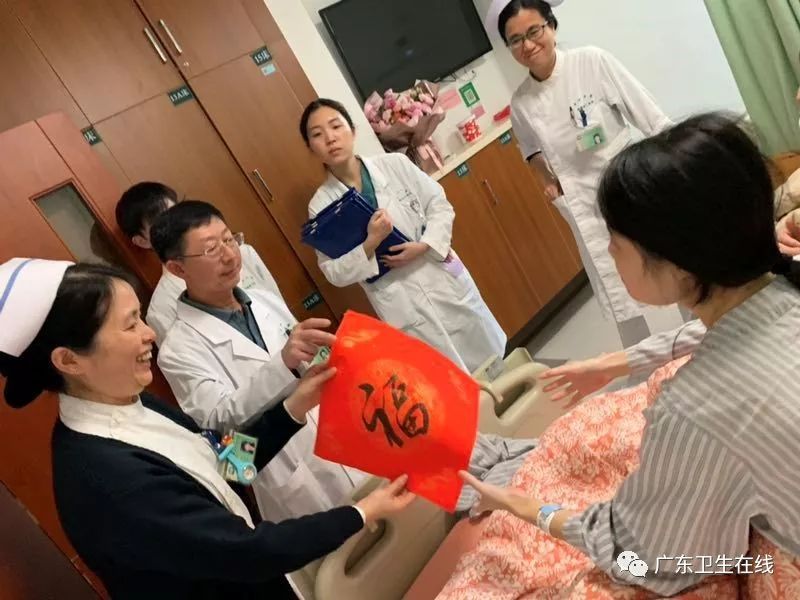 大年三十,妇科肿瘤领域权威专家、中山大学孙逸仙纪念医院妇科肿瘤学科带头人林仲秋教授在完成3台外地恶性肿瘤手术后,从深圳赶回广州,带领值班医生护士进行节前最后一次夜查房,并将亲笔书写的“福”字送给癌症病人,留守患者及家属向医生表达喜悦与感恩之情。