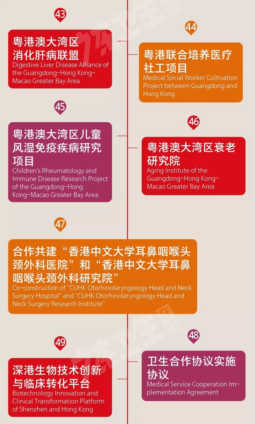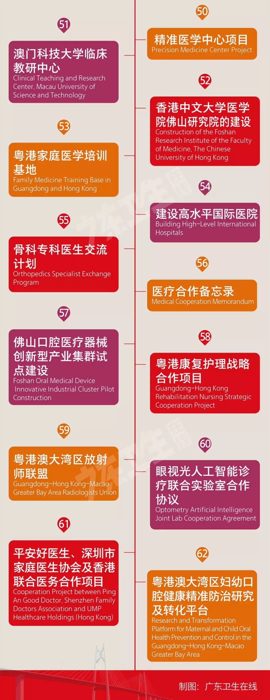 开幕式上,粤港澳三地共同签署《粤港澳大湾区卫生健康合作共识》,深化粤港澳大湾区卫生健康合作机制,推进粤港澳大湾区卫生健康事业高质量发展。在疾病研究、传染病防控、人才培训、建设高水平国际医院等方面,三地共签署了62个合作项目。