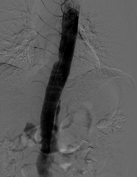 “根据沐叔的主动脉夹层起始部位,首选治疗方式是经血管介入主动脉覆膜支架腔内隔绝手术,即在降主动脉置入覆膜支架,达到封闭主动脉内膜破口,达到血管腔重新塑型的目的,但是经过主动脉造影检查发现,沐叔的胸降主动脉段假腔已经塑型,将真血管腔挤压成头发丝那样细小,真腔血管壁还有出现黏连,连极细小的引导导丝都没办法通过真血管腔,而且勉强通过导丝会引起患者剧烈疼痛,甚至可能引起腹腔脏器缺血改变、血管破裂大出血,危及生命,介入手术操作变得相当棘手”钟志敏主任说。