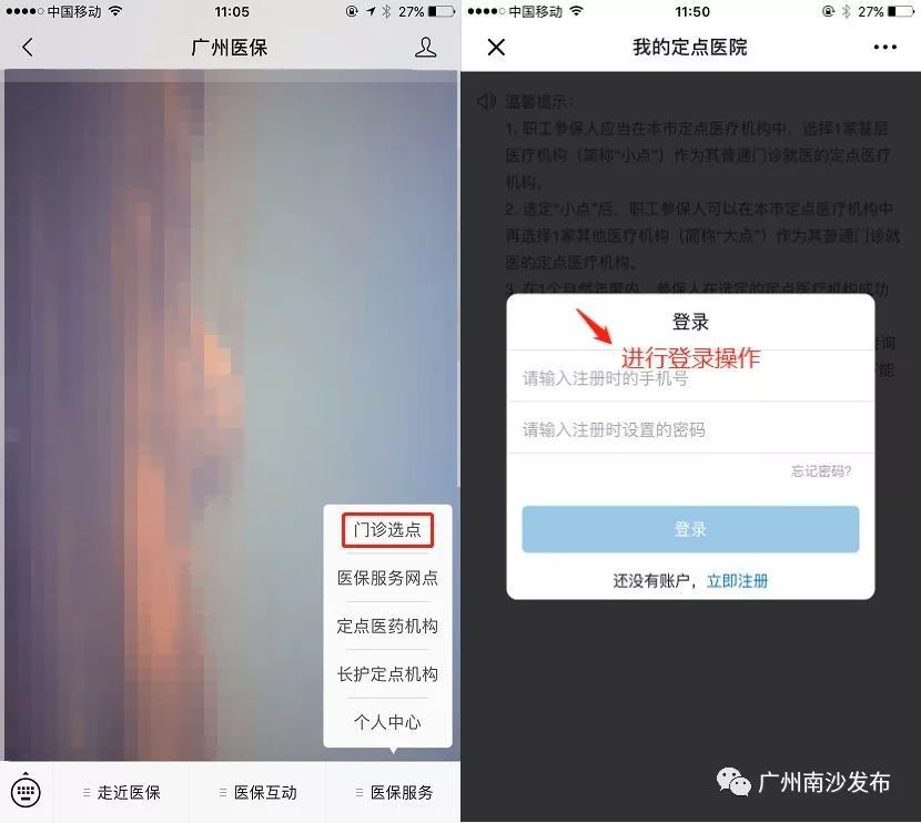 登陆“广州医保”公众号,点击菜单栏“医保服务”-“门诊选点”。(目前此功能在升级中)