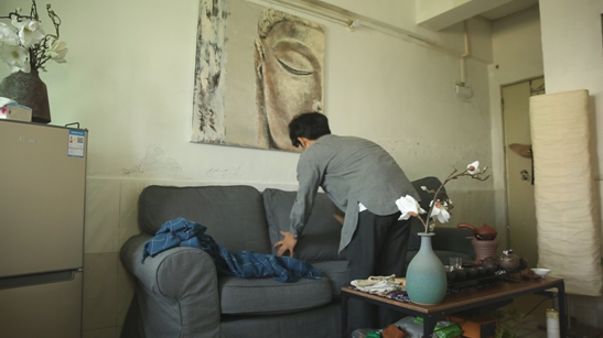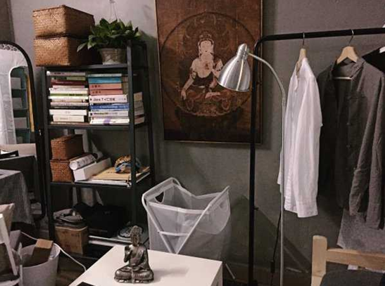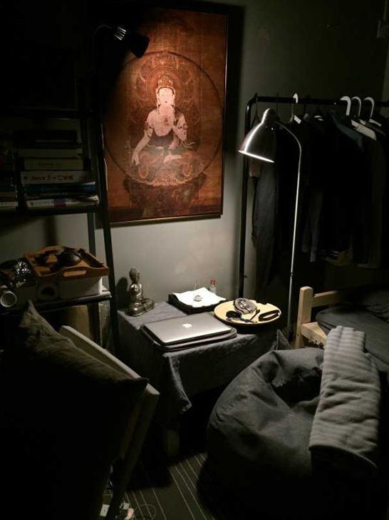 居所是一套两室一厅的旧房,属于他的那一间只有8平方米,原来是非常杂乱且潮湿的储物室。主人虽然把房间清理一空,仍然不见大,感觉东西放进来后,人就没地方站了。