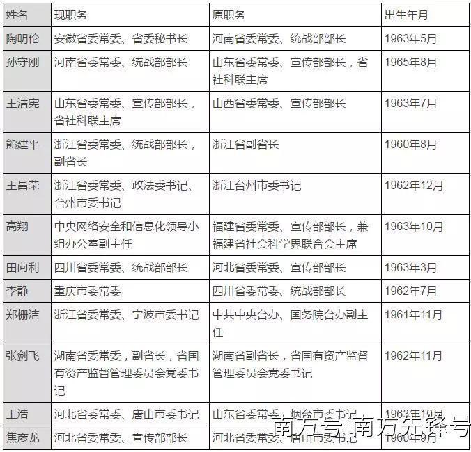 密集调整的12位省级常委