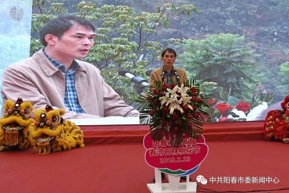 2月23日上午,阳春市第八届春湾石林桃花节在国家地质公园春湾景区开幕。阳春市委常委、宣传部部长陆雪,副市长陈希怀参加了活动。