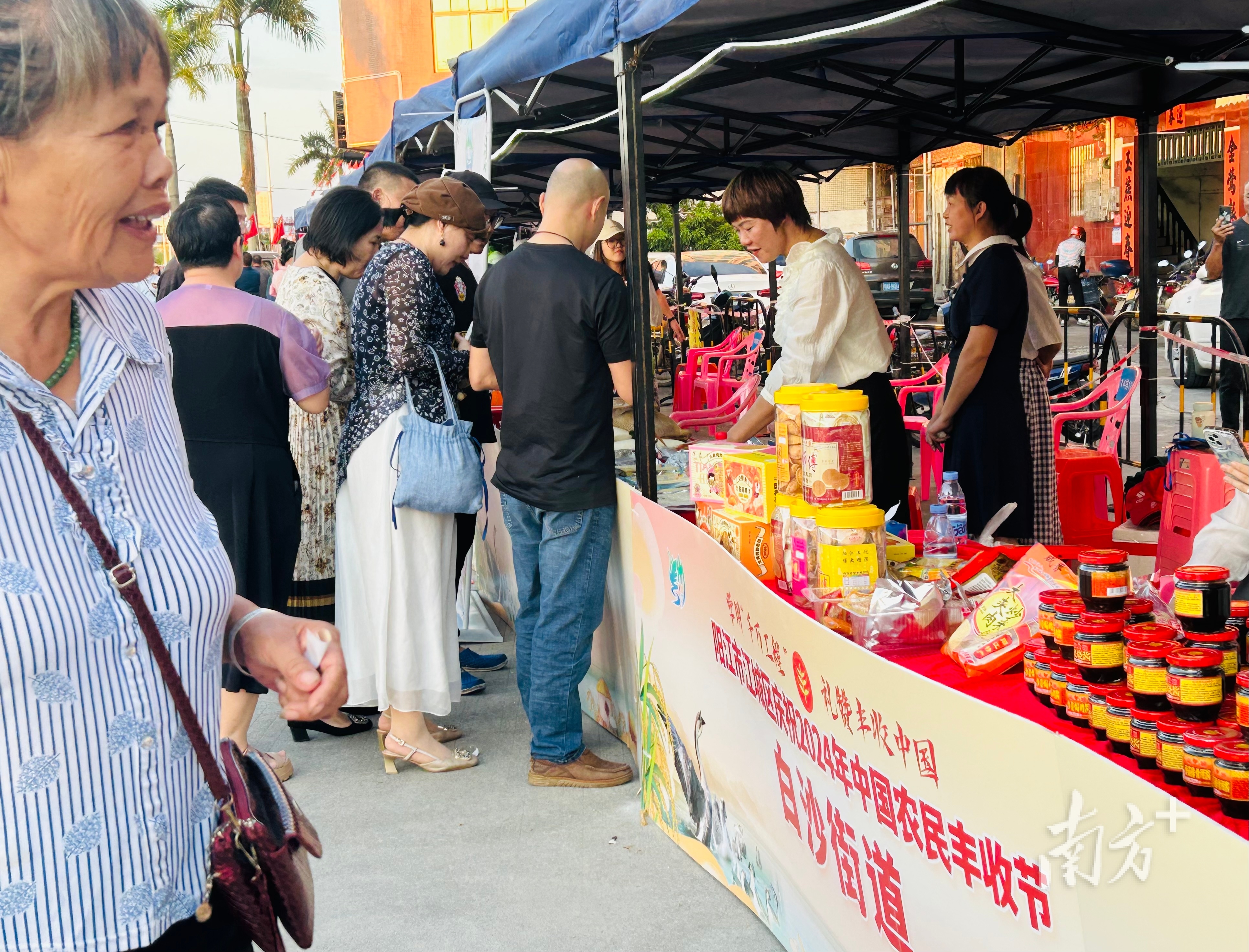 活动现场《盛世花开》《乡村恋歌》等节目轮番上阵,大家沉浸在优美的歌声和动感的舞蹈中,品尝着鹅美食,欣赏着晚霞。饭后,市民们走在晚风习习的白沙大道上,逛着阳江特色产品展位,城西街道的蟛蜞酱,白沙街道的鹅肉粒、鹅百臻……各个镇(街道)的产品广受群众欢迎。火爆全网的“大鹅”雕像前也站满了“粉丝”,与“大鹅”合影的人络绎不绝。