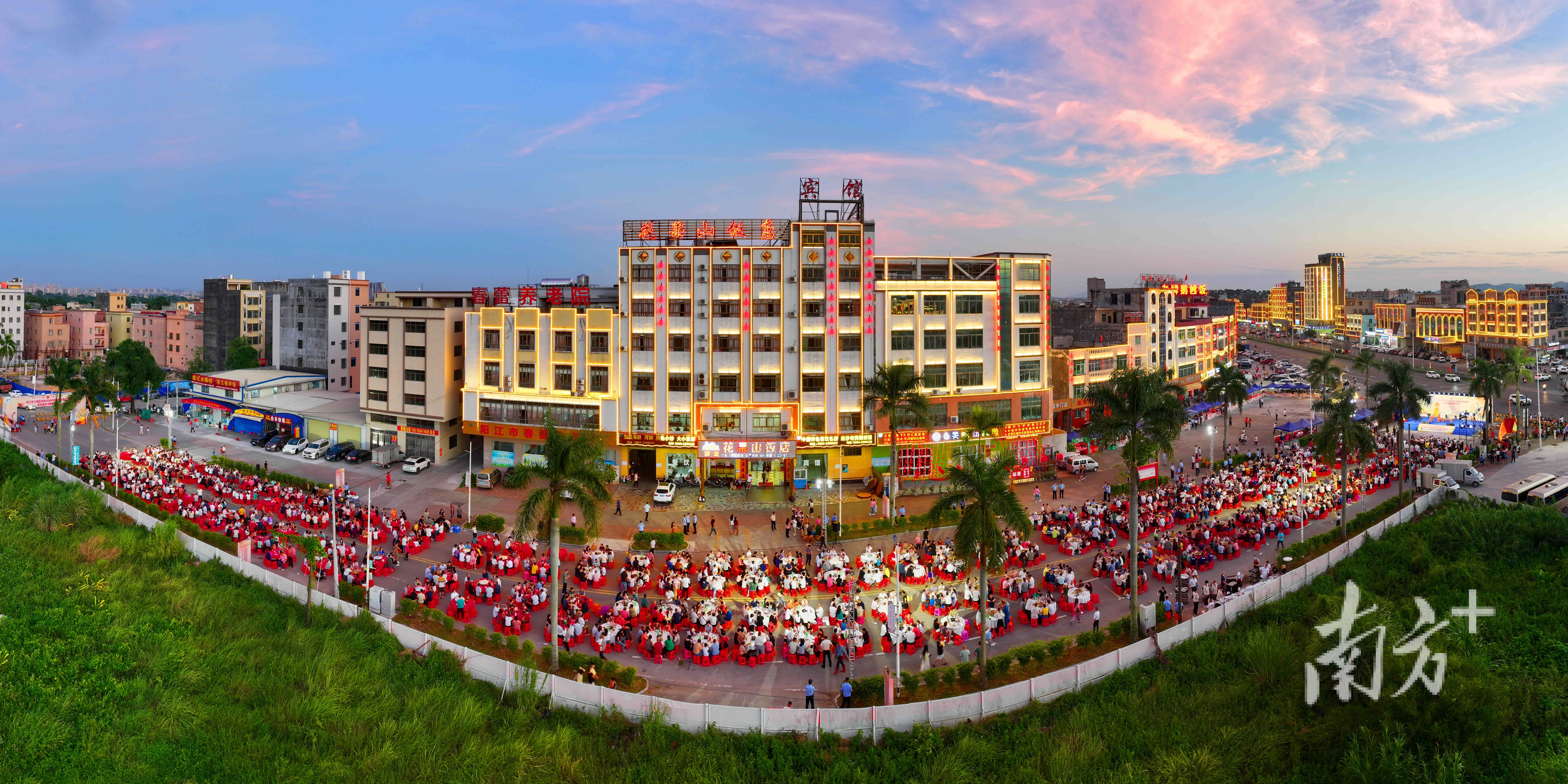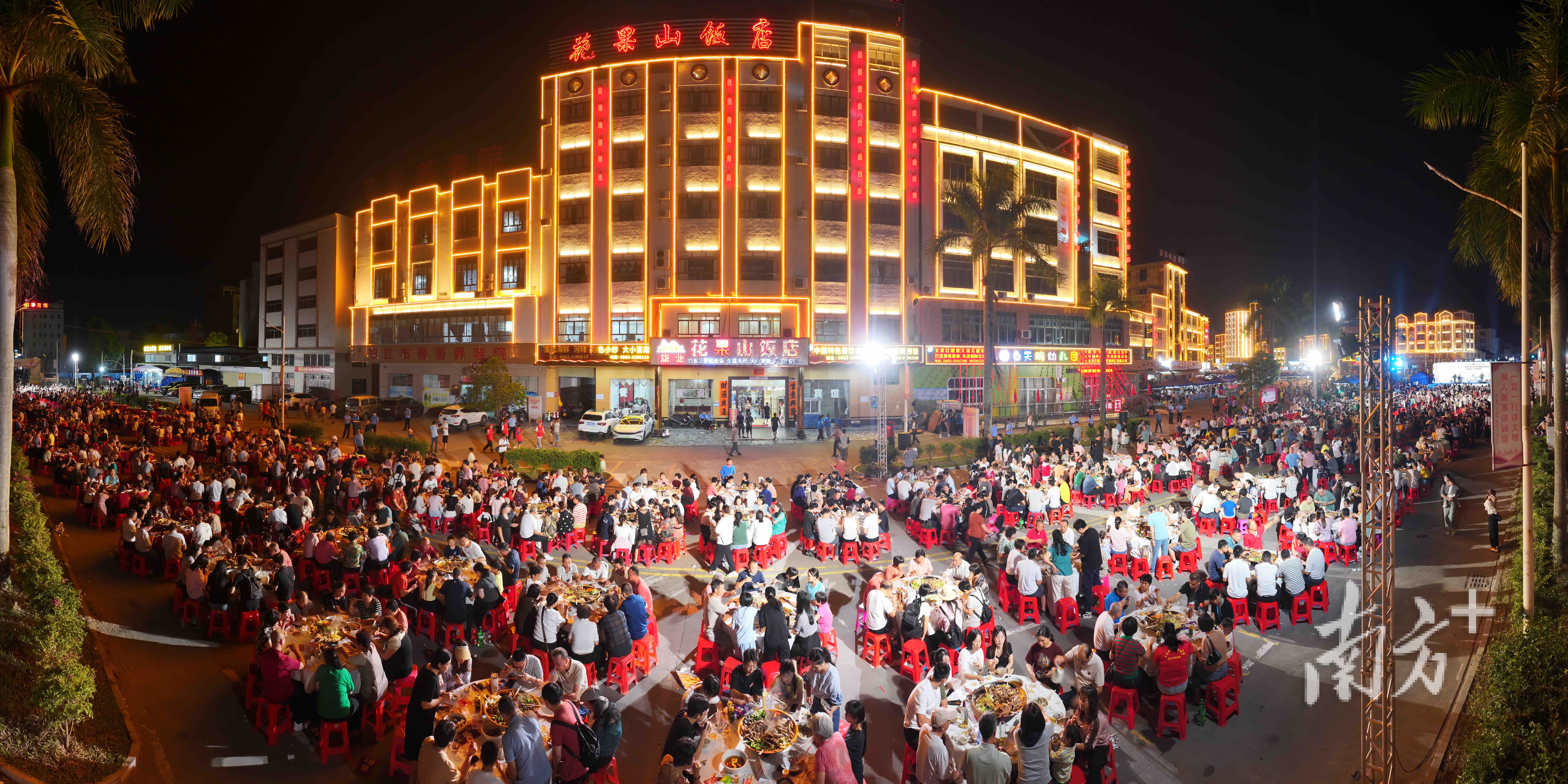 下午6时许,现场热闹非凡,两百桌宴席铺满白沙大道,人们沉浸在欢声笑语中,到处充满了喜庆的节日气氛。