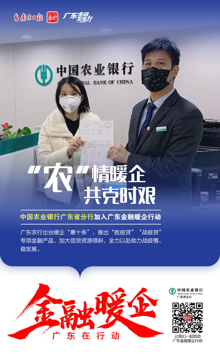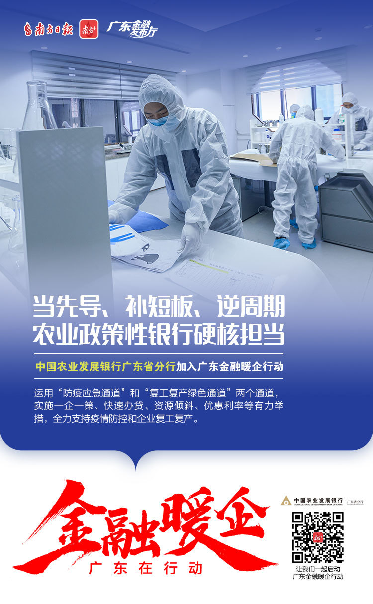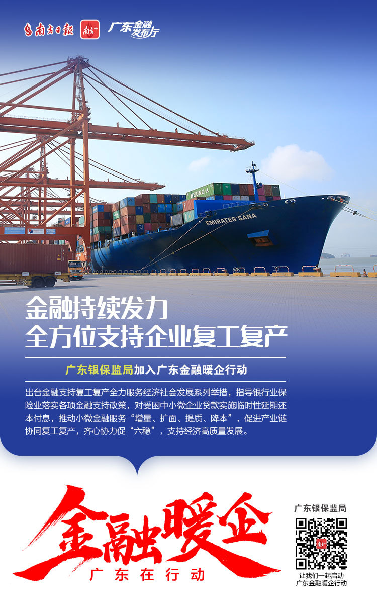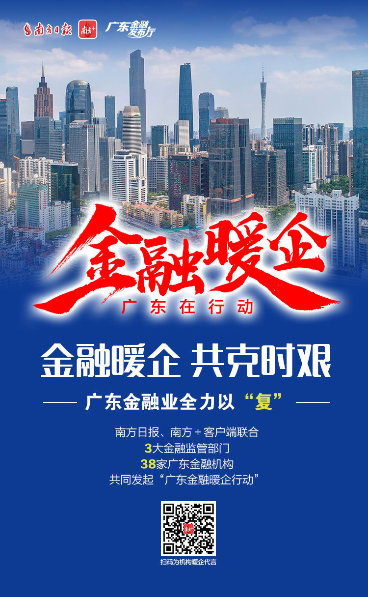 为了更好地对我省金融支持复工复产政策进行宣传、全面传递金融监管部门暖企政策、金融机构暖企举措,南方日报发起“广东金融暖企在行动”系列活动,获得省地方金融监督管理局、人民银行广州分行、广东银保监局等3大金融监管部门及38家金融机构积极响应。让我们通过41张海报看广东金融业责无旁“贷”、全力以“复”。