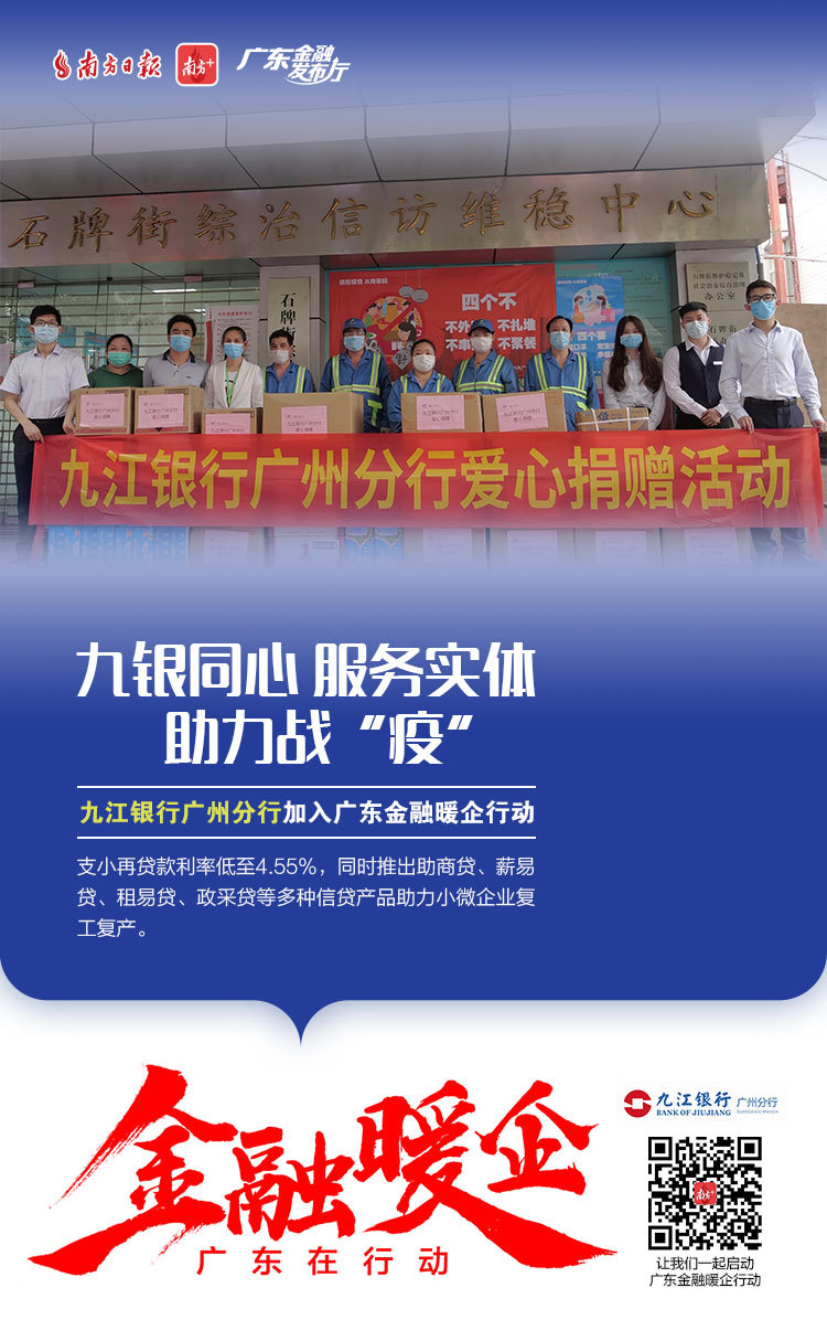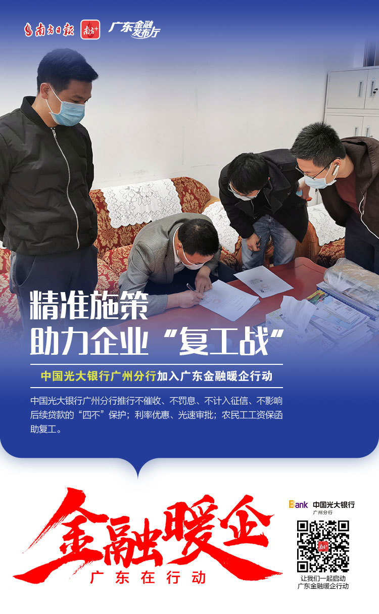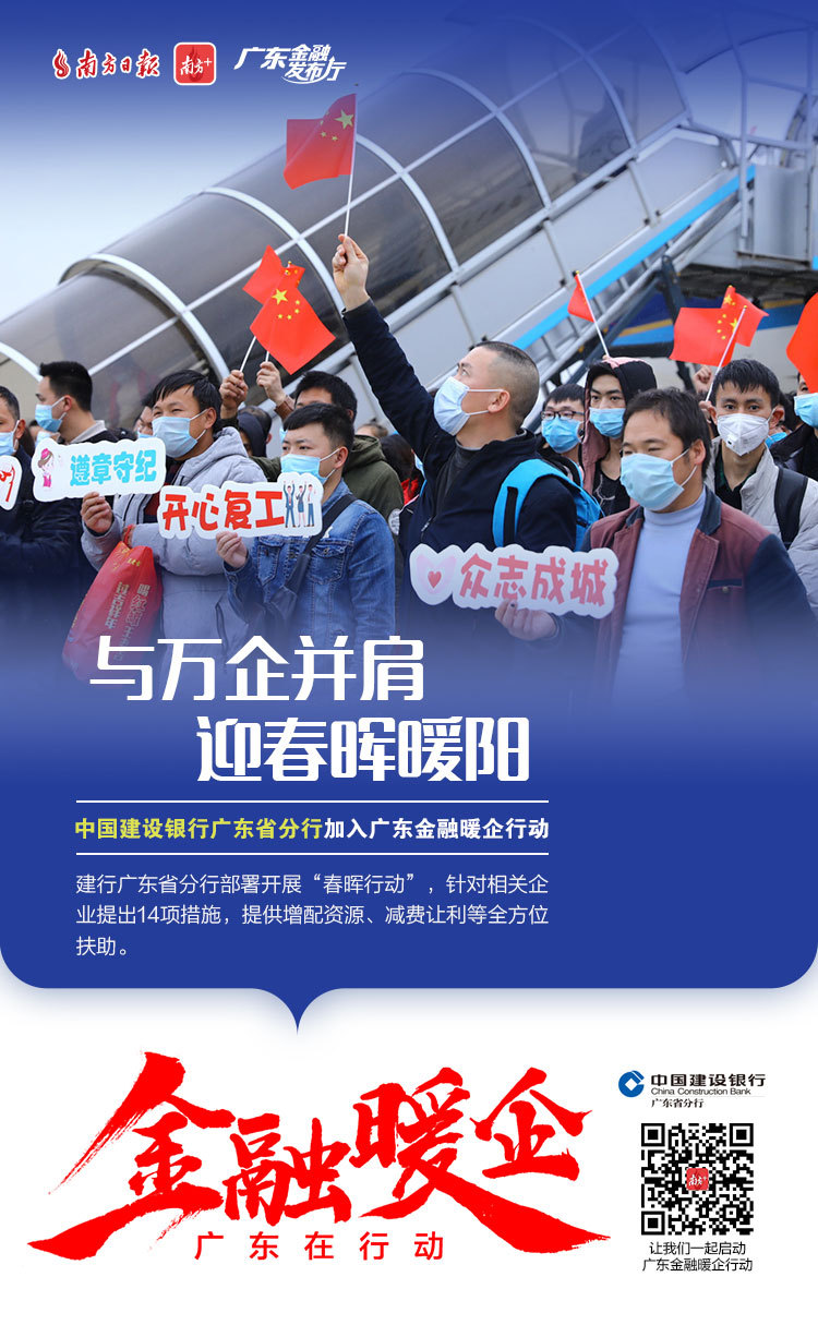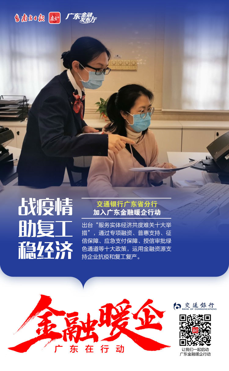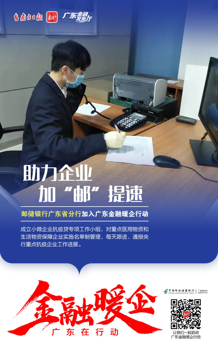 为了更好地对我省金融支持复工复产政策进行宣传、全面传递金融监管部门暖企政策、金融机构暖企举措,南方日报发起“广东金融暖企在行动”系列活动,获得省地方金融监督管理局、人民银行广州分行、广东银保监局等3大金融监管部门及38家金融机构积极响应。让我们通过41张海报看广东金融业责无旁“贷”、全力以“复”。