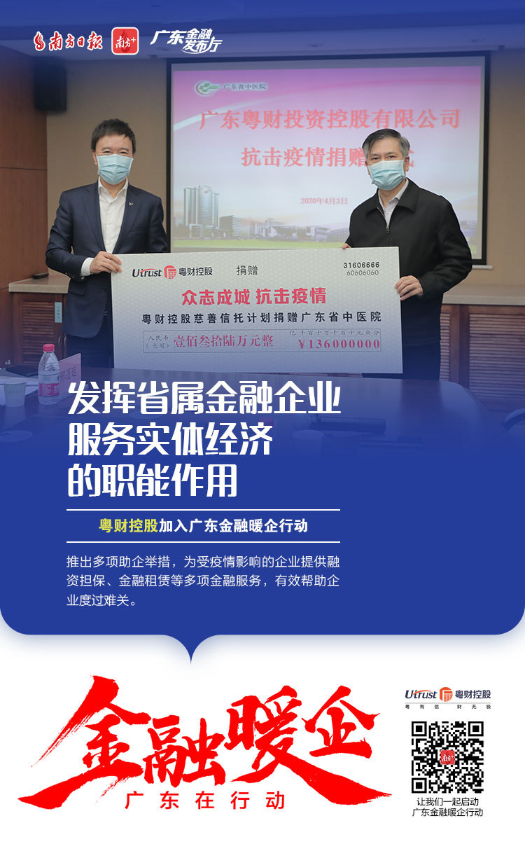 推出多项助企举措,为受疫情影响的企业提供融资担保、金融租赁等多项金融服务,有效帮助企业度过难关。截至3月31日,粤财控股旗下10家参控股地市担保公司疫情期间为支持疫情防控和受疫情影响的60家企业提供金融服务,担保贷款金额合计1.24亿元;为23家受疫情影响较大的企业调整还款计划,担保贷款余额5435万元。