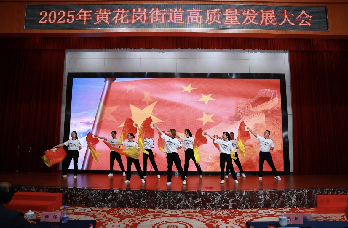机器狗和街道工作人员一起登台表演、经典粤语歌曲唱出基层治理温度、妙语连珠三句半讲述街道工作新愿景……3月7日下午,黄花岗街道举行高质量发展大会,会上,一个接一个的精彩节目引得台下掌声阵阵,改变开会形式,黄花岗街道邀请辖内机团单位、企业代表欢聚一堂,以“携手共进 向新启航”为主题,通过文艺节目与表彰授牌相结合的形式,生动展现街道经济活力与社会治理成效。