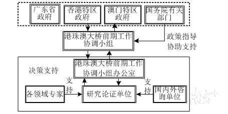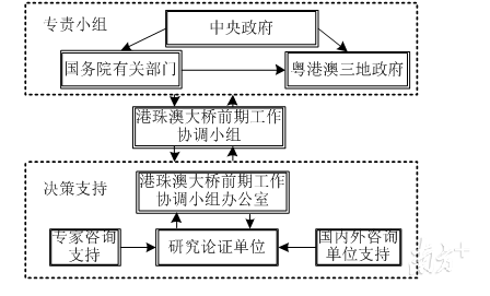 港珠澳大桥专责小组的成立,完善了港珠澳大桥前期决策的组织体系与协调机制,从而形成了“港珠澳大桥专责小组——港珠澳大桥前期工作协调小组——港珠澳大桥前期工作协调小组办公室”的三级架构。