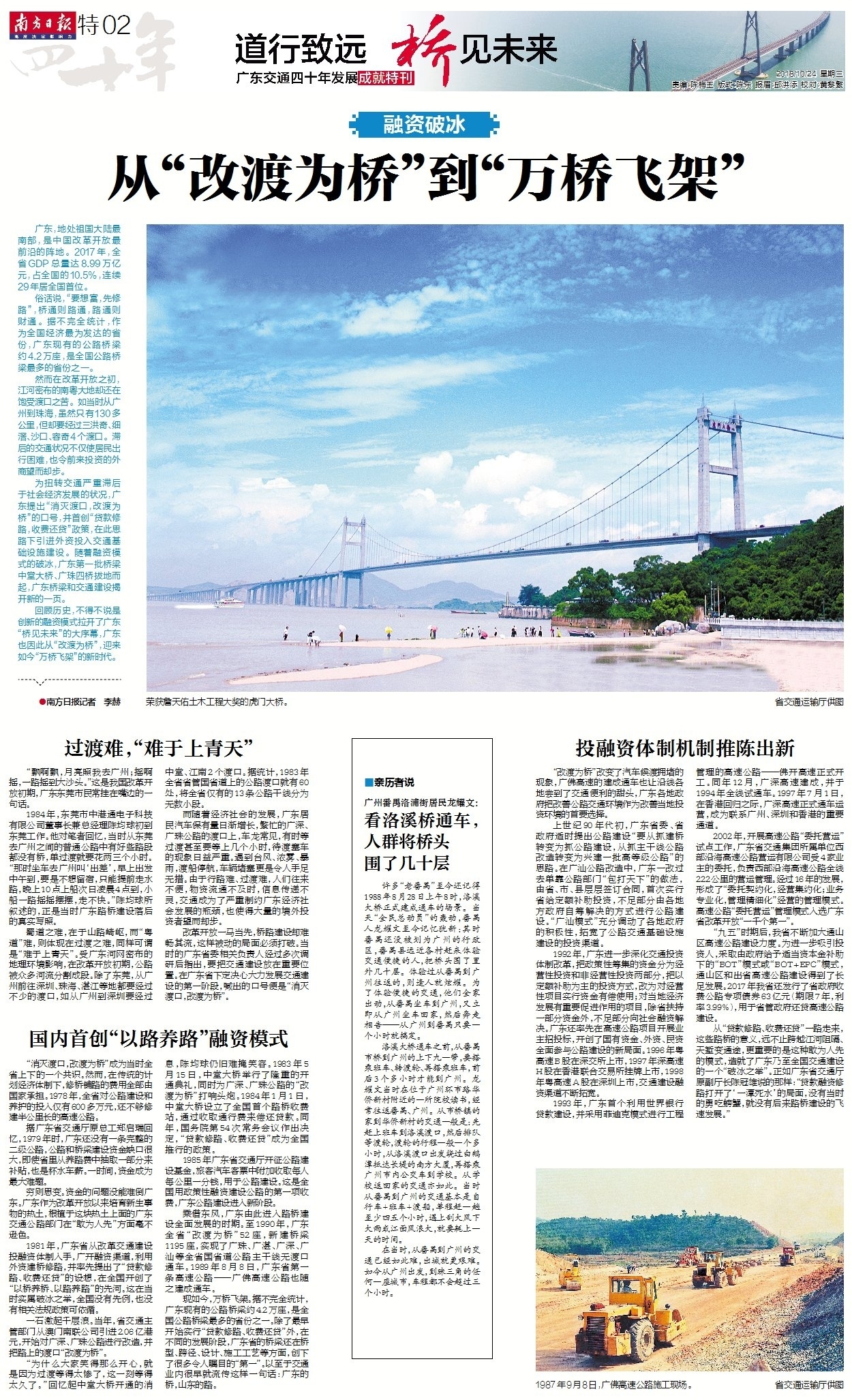 广东是开放的。“贷款修路、收费还贷”的政策率先在广东试水,为中国公路桥梁建设打开了局面。广东的“一小步”,推动了中国的“一大步”。