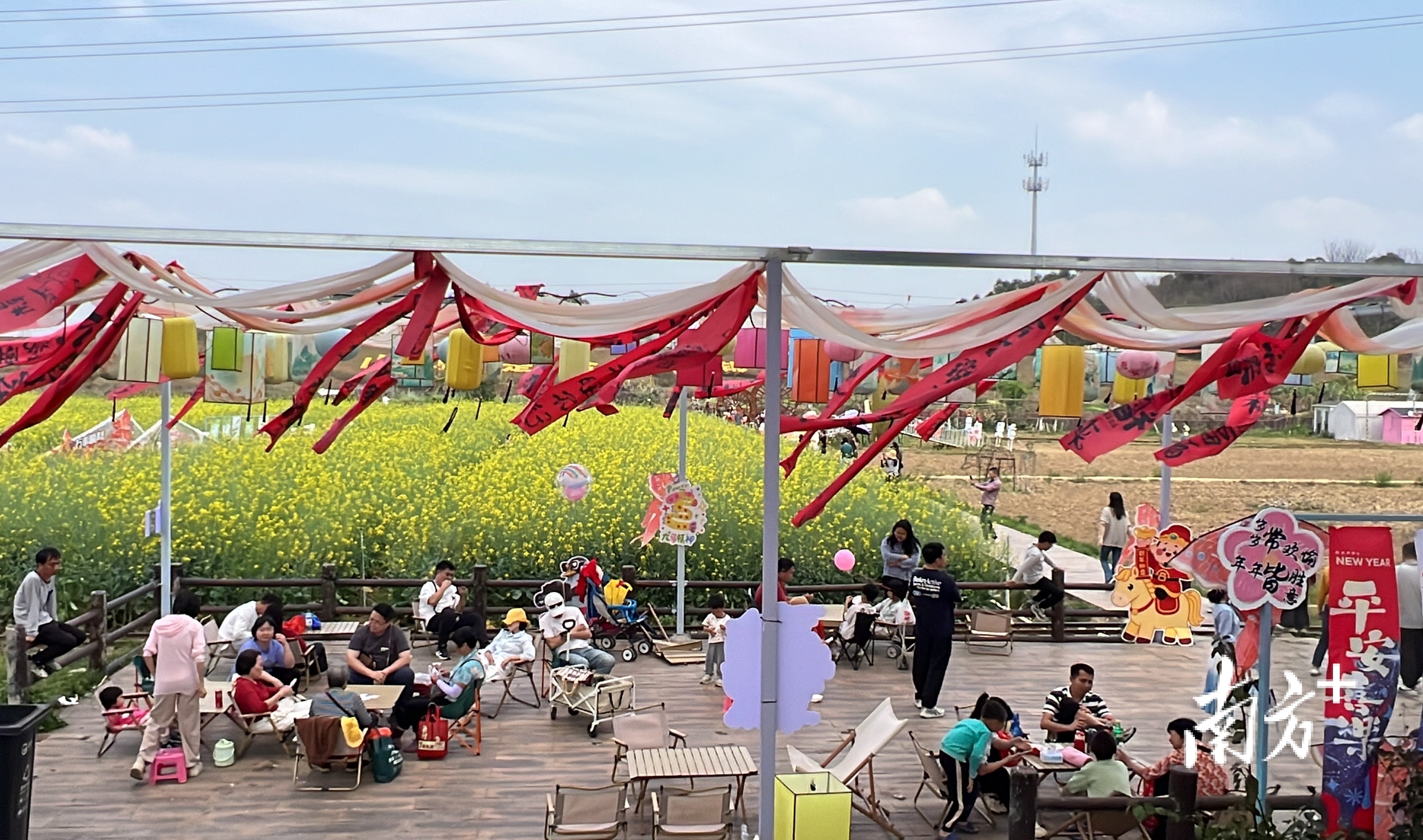 新春佳节正是赏花时,七彩花田及九穗农业园200亩油菜花、金鱼草焕新装扮,并且加装“马到成功”打卡装置、“有财花”谐音等内容,让相关地段成为佛山最具年味的花海打卡地之一。