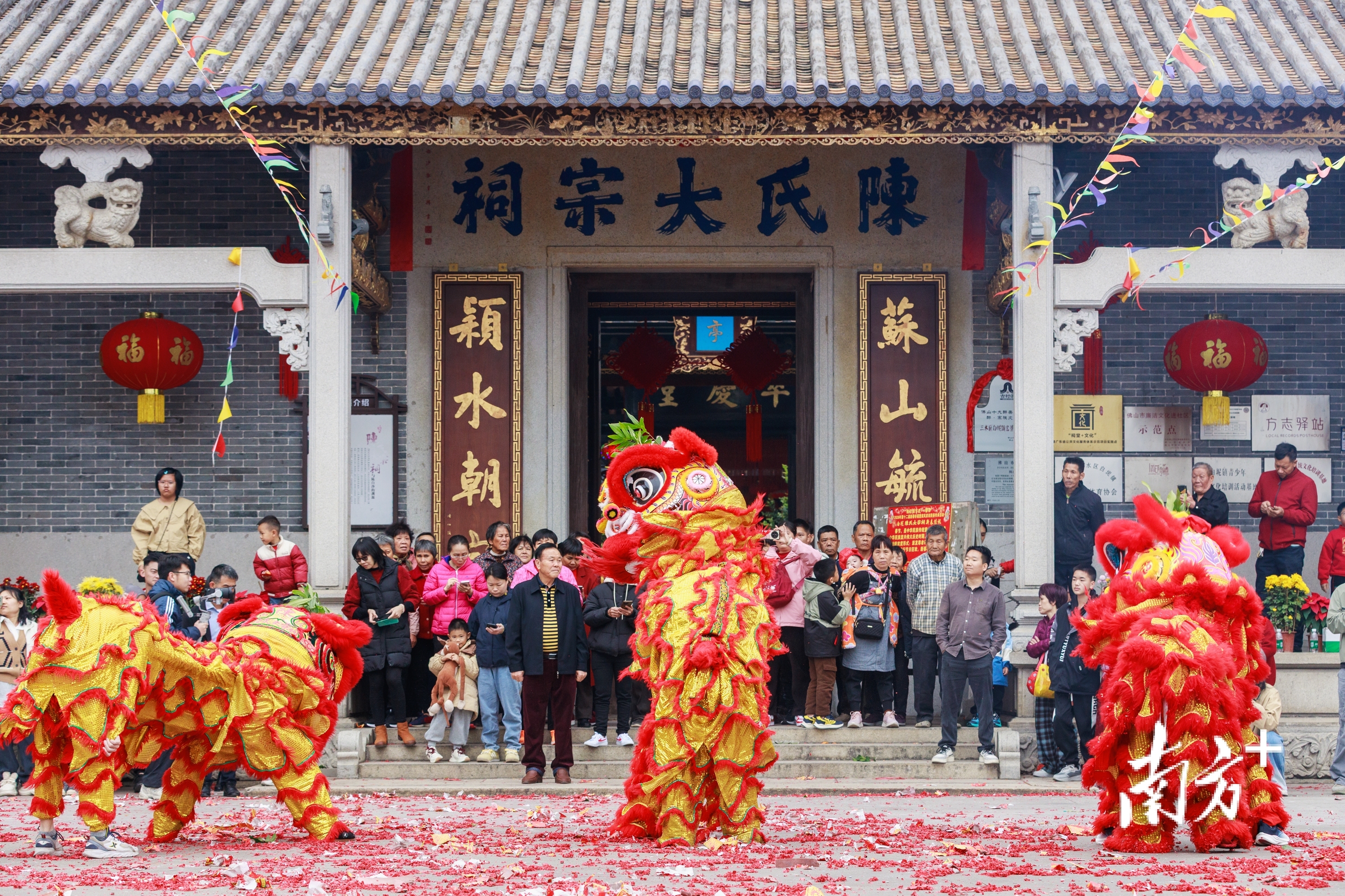 大年初一,“百狮跃两江”醒狮献瑞活动在陈氏大宗祠主会场及金竹村、岗头村等村组分会场同步启动。