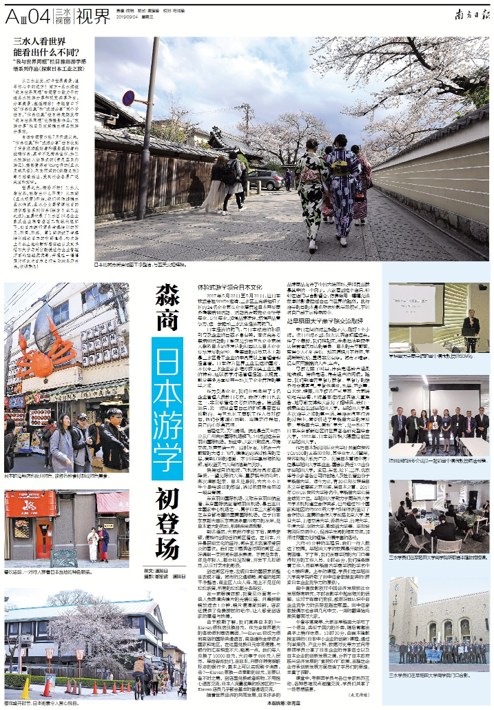 世界之大,精彩不断!三水人看世界,能看出什么不同?从本期《三水视窗》开始,我们将陆续推出三水作家、三水企业高管谭旭日的游学感悟系列作品《探索日本工业之旅》,主要记录了三水区24名企业家及企业高管在区工商联的组织下,赴日本进行商务考察培训的所见、所闻、所感。