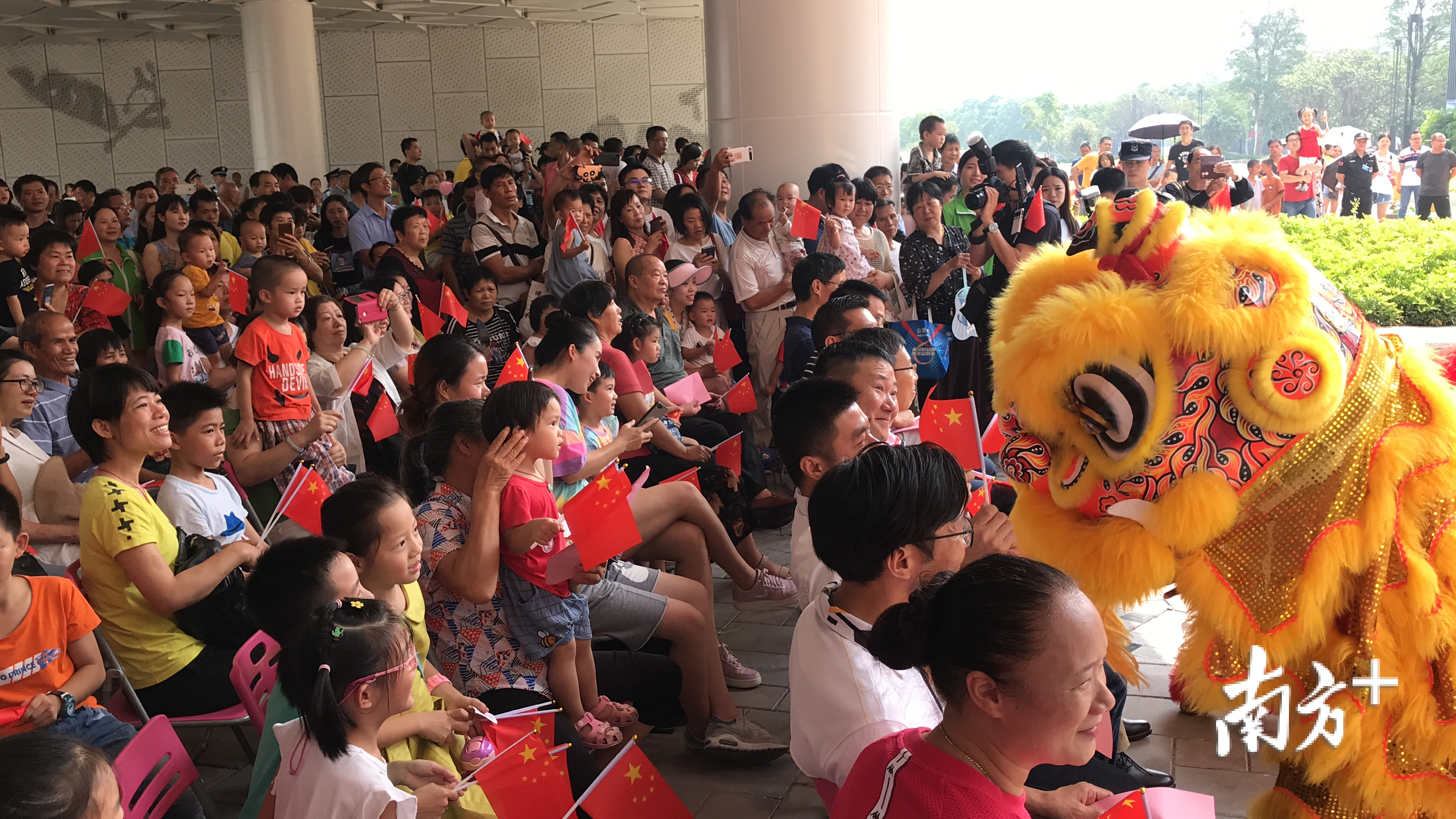 传统狮表演、武术表演、舞龙表演、高桩醒狮表演……开幕式上,佛山南海黄飞鸿醒狮队用精彩的表演掀起一轮小高潮。这支有名的醒狮队伍昨晚还在北京天安门广场上的国庆70周年联欢活动中登台亮相,三水市民对于他们的到来给予热烈的掌声。