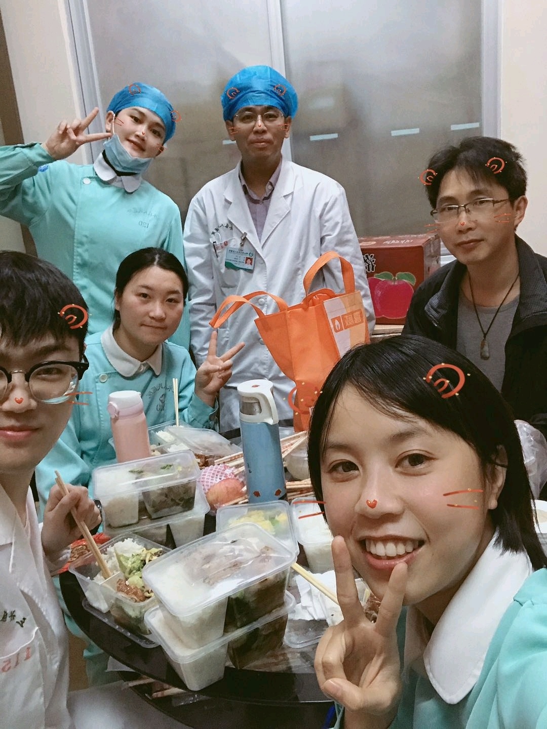 ▲1月24日下午6时许,三水区人民医院护士黄健仪在休息室吃饭时与远在潮汕的家人视频,并向家人致歉,说自己不能回家一起团聚。急诊科副主任刘平喊来几个同事和黄健仪一起合影留念,庆祝这个特殊的年三十,并安慰她:我们也是一家人。