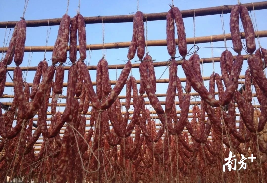 秋风起,在芦苞大街小巷的空旷地带,总能看见晾好的鱼干和腊味。油光发亮的腊肉、红亮紧实的腊肠、色如琥珀的腊鸭、有嚼劲的鱼干也成为了“芦苞四宝”。