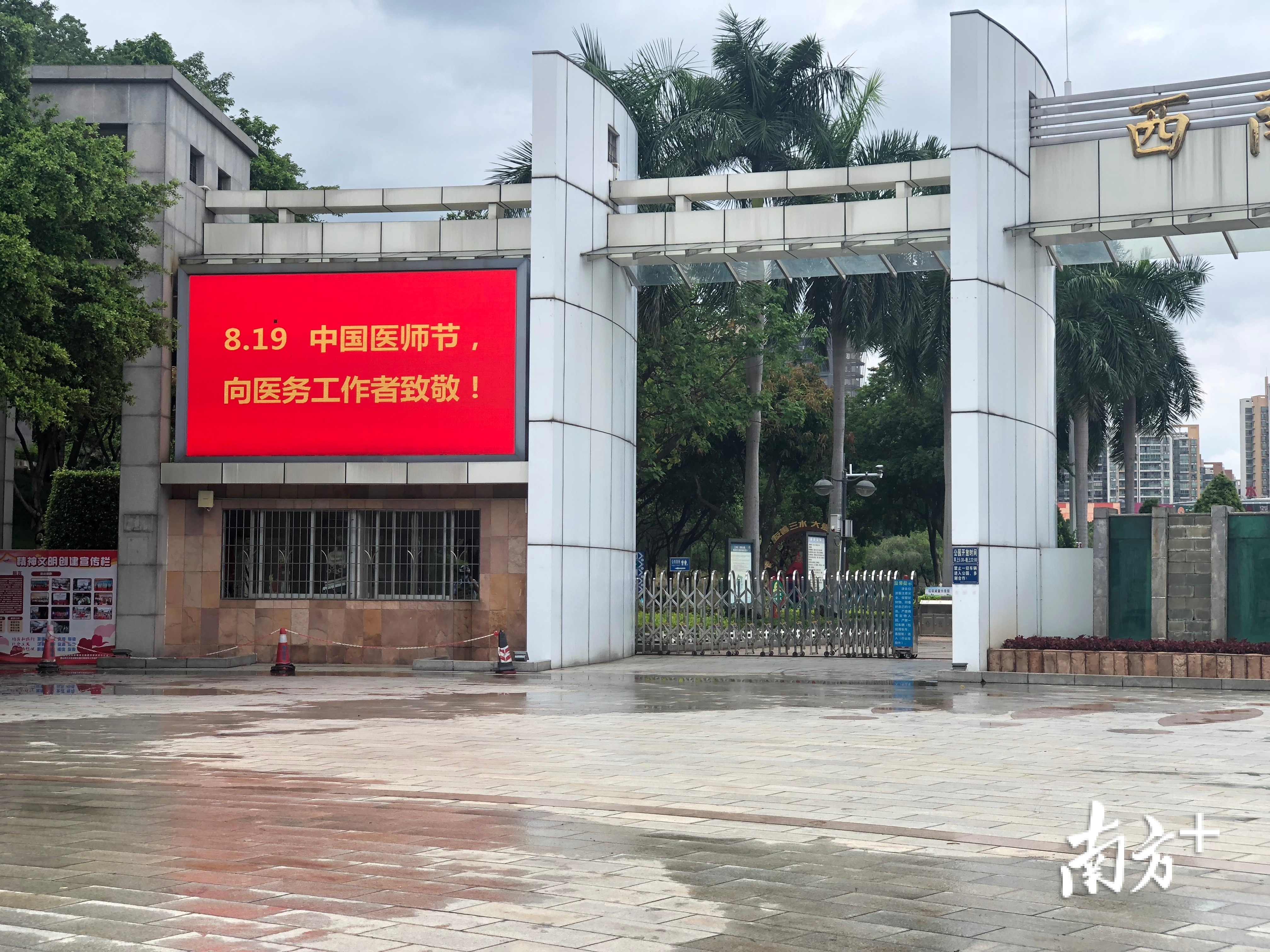 8月19日是第三个中国医师节。傍晚时分,在三水区冠军城、西南公园南门、新动力广场、三水汽车站、城市三水未来馆、三水广场、宣言广场、孔圣园等中心城区多处地标建筑的户外LED大屏幕闪烁着“8.19中国医师节,向医务工作者致敬”“弘扬抗疫精神,护佑人民健康”两条中国医师节宣传标语。