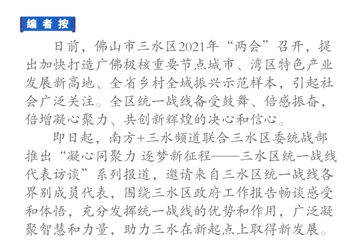 “作为一个老代表、老‘新三水’人,真切感受到三水在‘十三五’期间的变化,感受到三水蓬勃发展的生机和活力。”三水两会期间,三水区人大代表、区工商联主席、广东盛路通信科技股份有限公司(以下简称“盛路通信”)董事长杨华接受记者采访,聚焦三水发展与变化,畅谈感受和体悟,建言献策助力三水取得新发展。