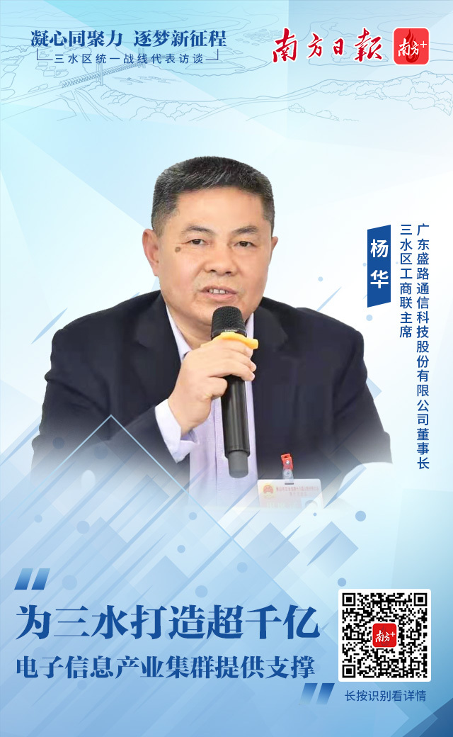 作为三水电子信息产业龙头企业盛路通信的创始人,杨华对政府工作报告提出的打造超7000亿的四大产业集群最为关注。其中,三水提出将打造超1000亿元电子信息产业集群。
