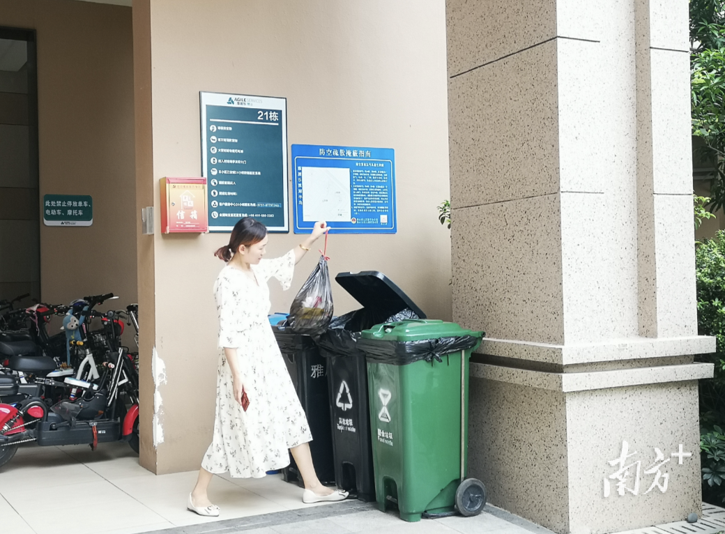 “习惯是慢慢养成的,把生活垃圾分类好,方便你我他。”住在北江社区碧桂园奥斯汀星荟的梁小姐表示,从小区倡导生活垃圾分类开始,自己和家人便开始养成分类投放的习惯。在小区楼层撤桶之前,他们已经习惯下楼扔垃圾,为了能够把生活垃圾分得仔细,自己在家就摆放不同的小垃圾桶做好分类。
