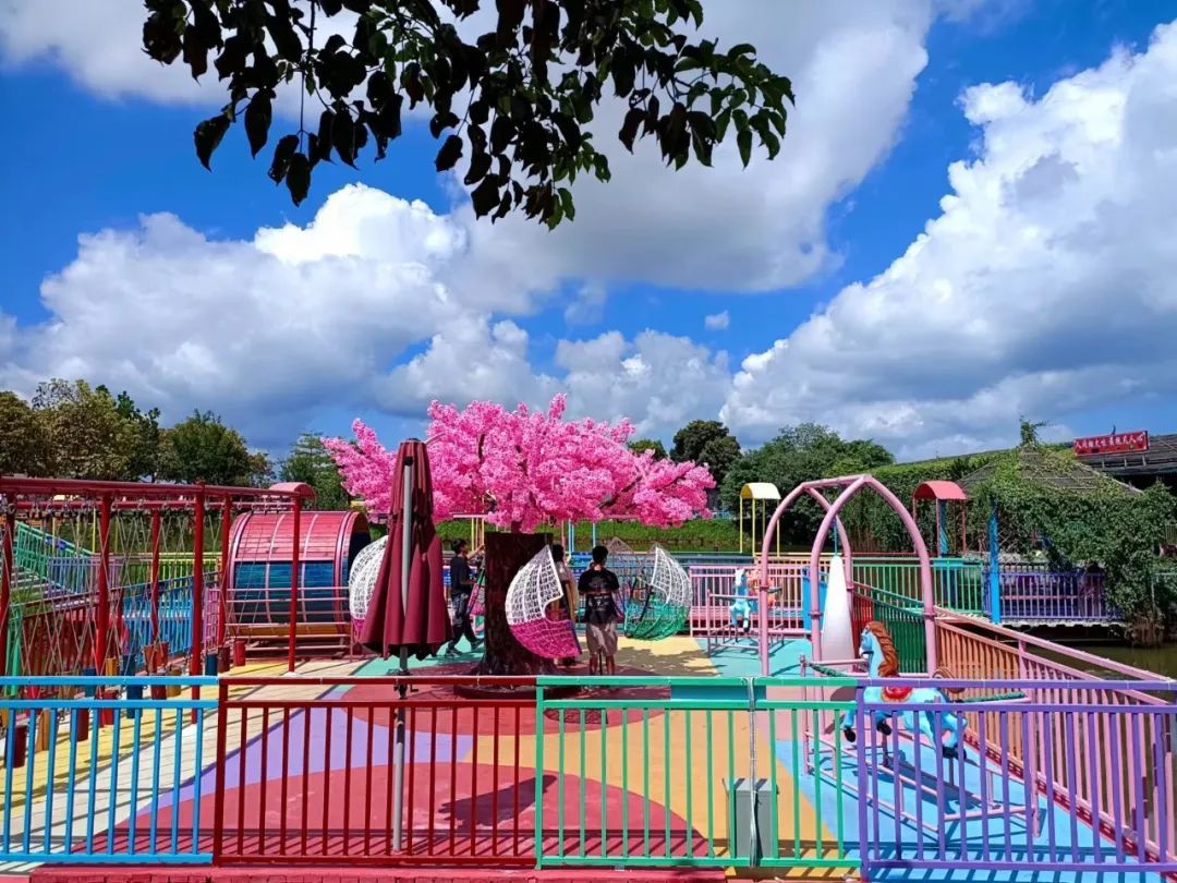 经过全面提升,改造过后的袁记鲜融入了时尚文创元素,粉色的儿童旋转乐园、七彩廊道、小木马等等游乐设施的加入,营造出了“品美食就是品文化”的白坭吃喝玩乐一条龙美食体验。