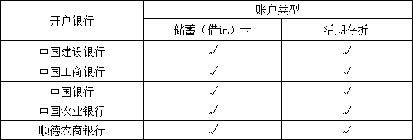 目前已开放端口的银行账户有: