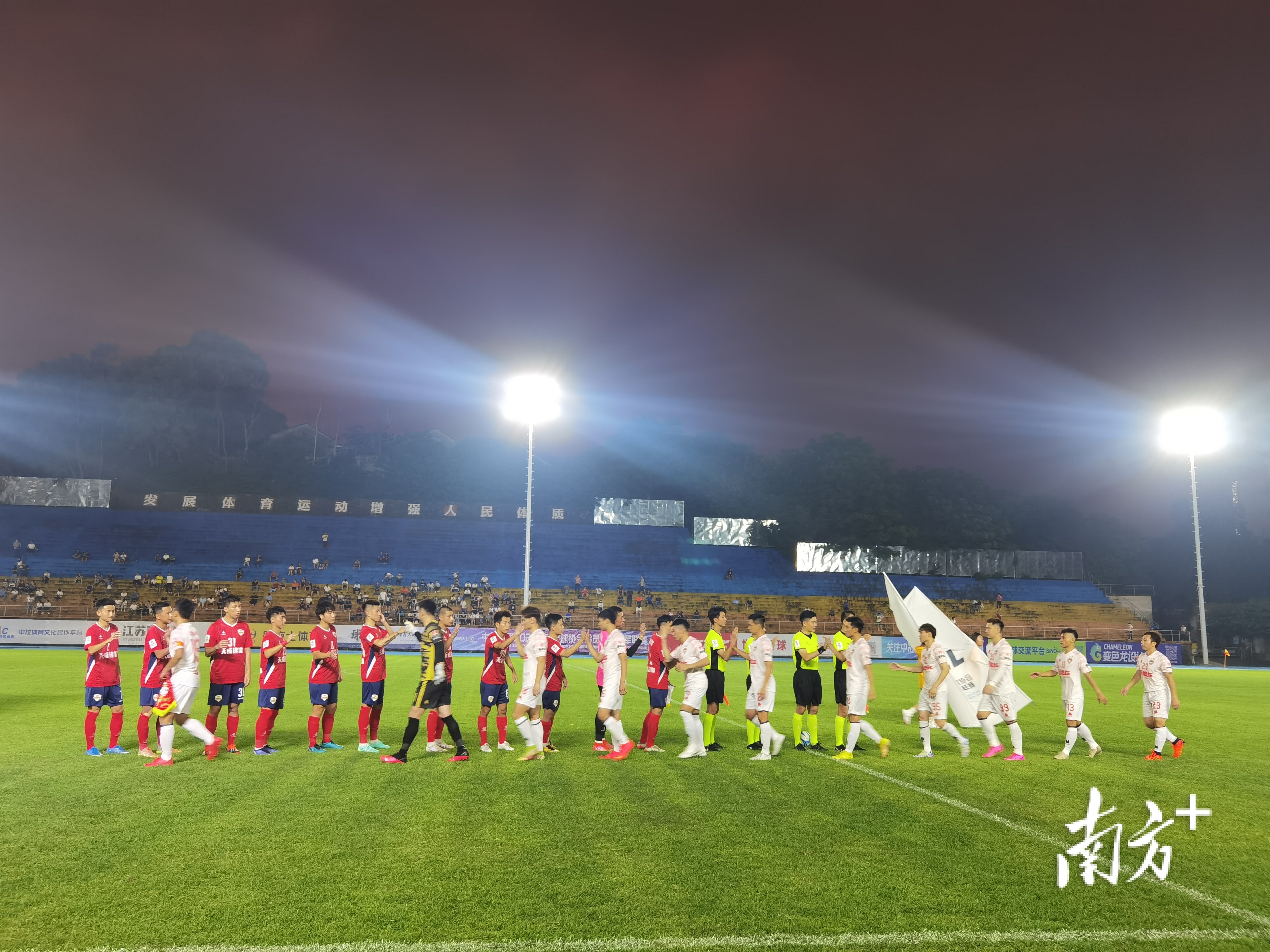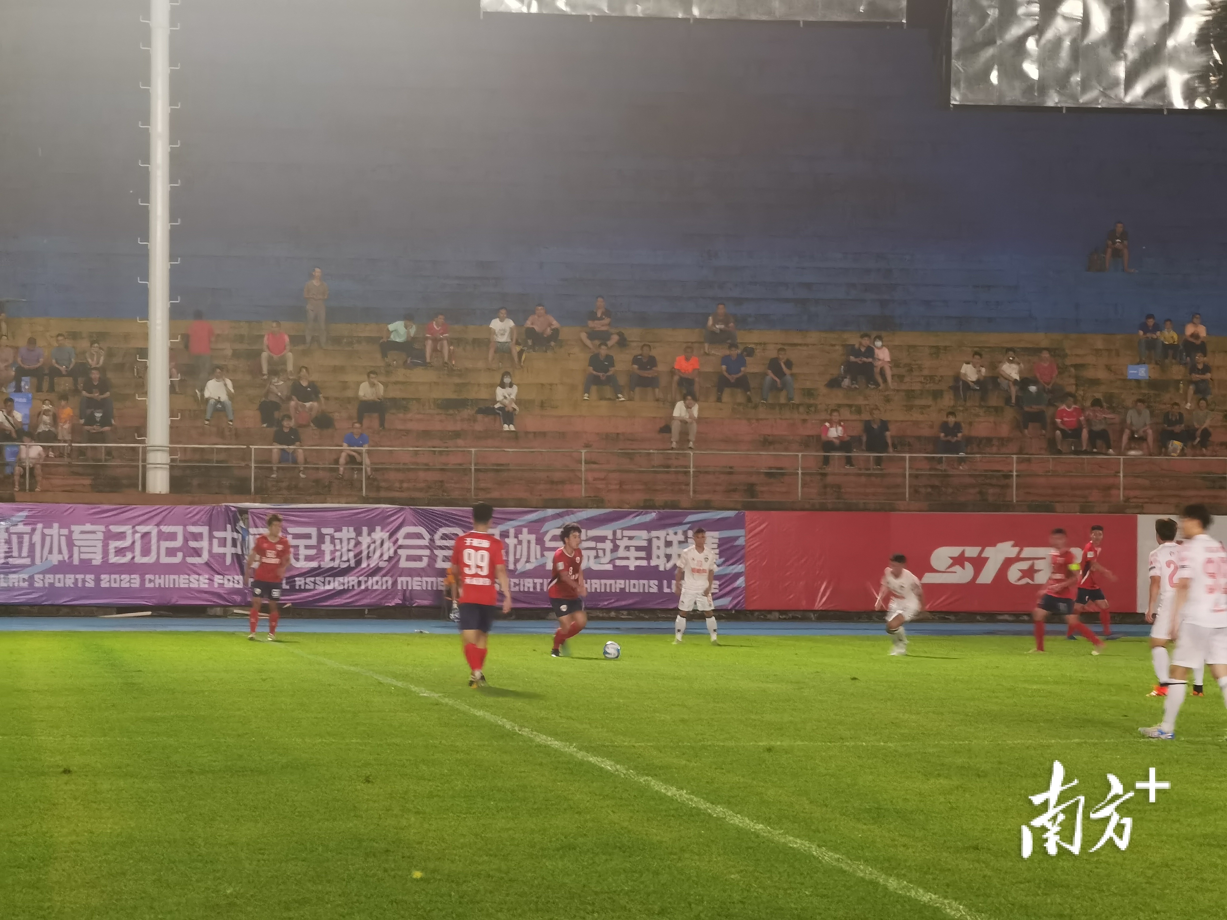 5月22日晚,中拉体育2023中国足球协会会员协会冠军联赛(佛山赛区)在佛山市三水人民体育场举行开球仪式。 南方+ 张秀蓝 拍摄