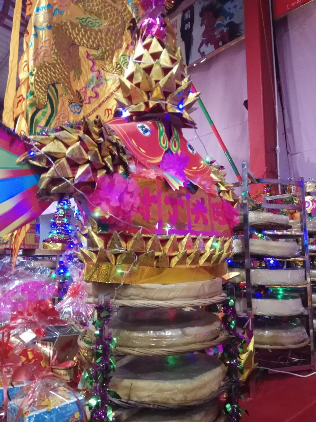 当天上午,记者在今年“摆猪羊”的主办地铺社看到,整个场地装扮一新,充满喜庆祥和的气氛。各家各户的供桌上摆满了“甜粿”、面线、工艺品等各式物品;