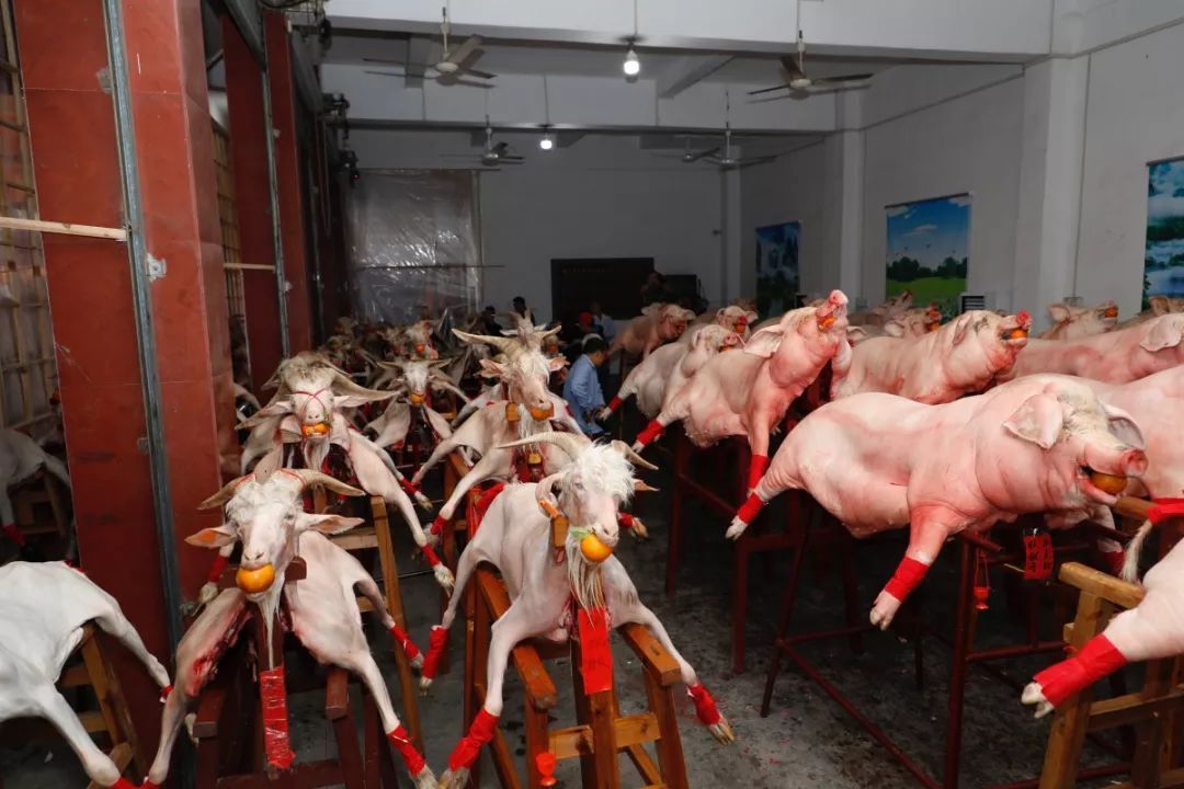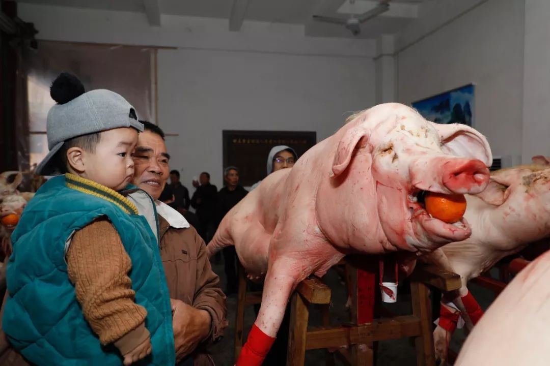 摆放有序的猪羊,口含大桔,身贴红纸,吸引了四乡八里的群众前来参观。同时,不少摄影爱好者纷纷从深圳、香港等地自发组织而来,用镜头记录下这一隆重朴实的独特民俗。