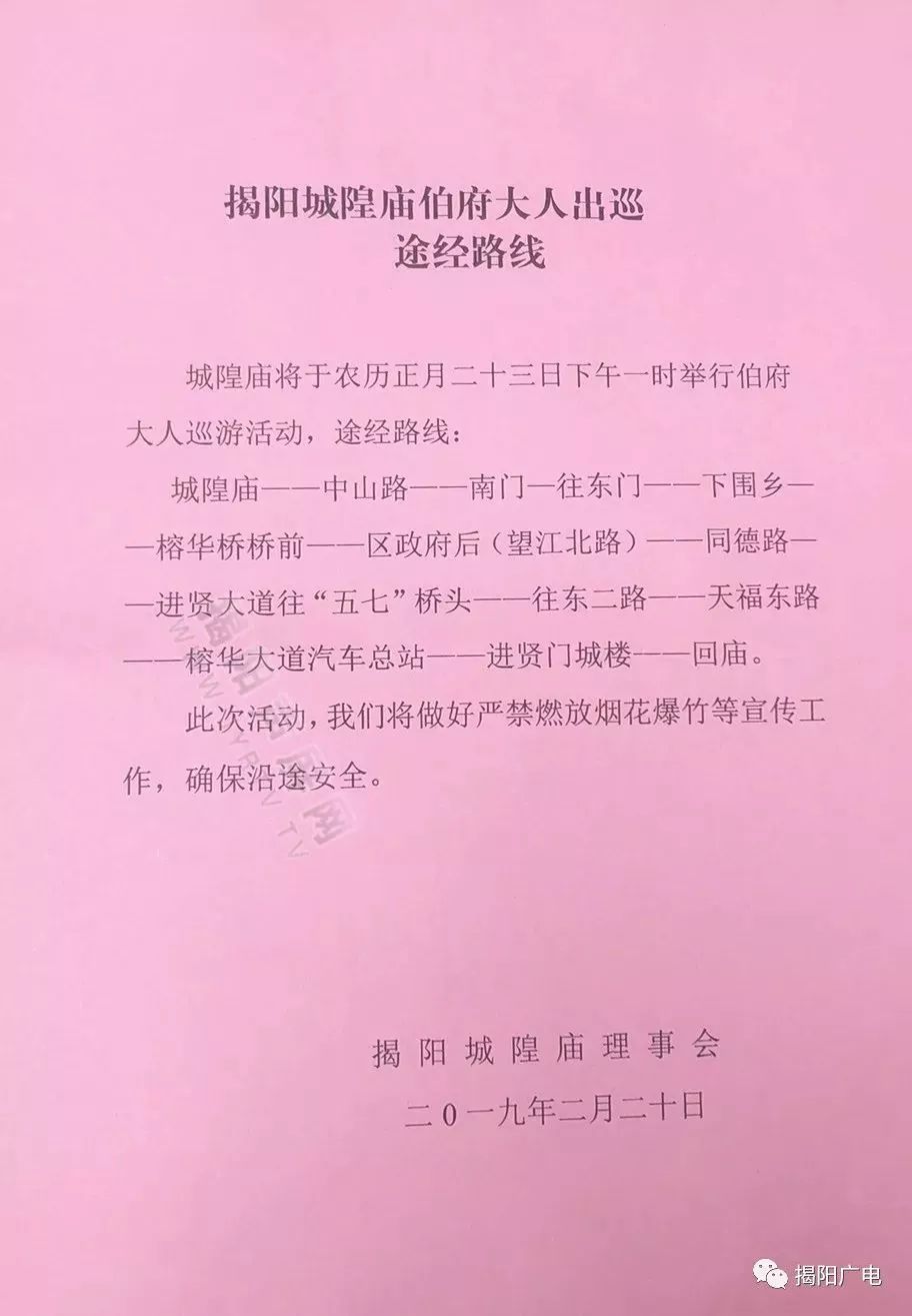 今年揭阳城隍庙会将于明天(农历正月二十三)下午1时开始举行,巡游路线最终确定: