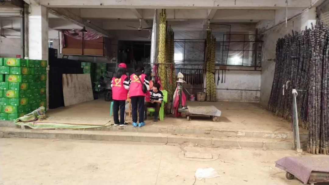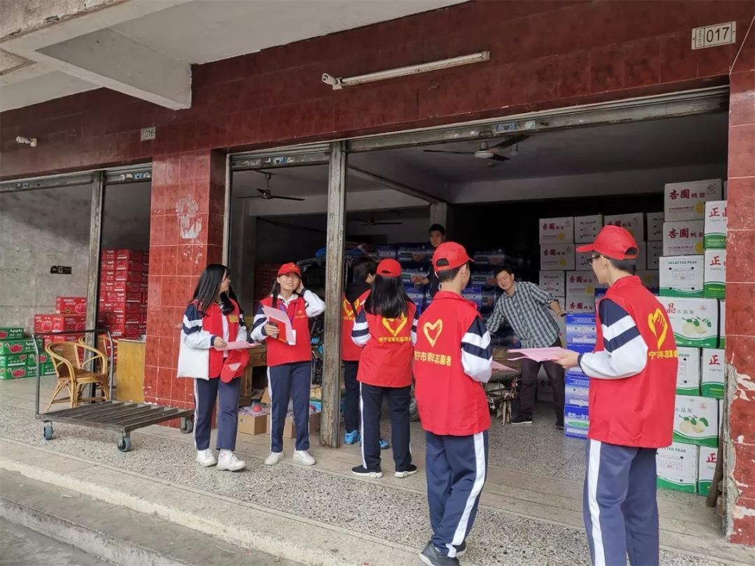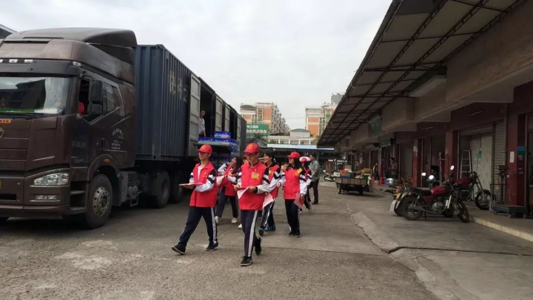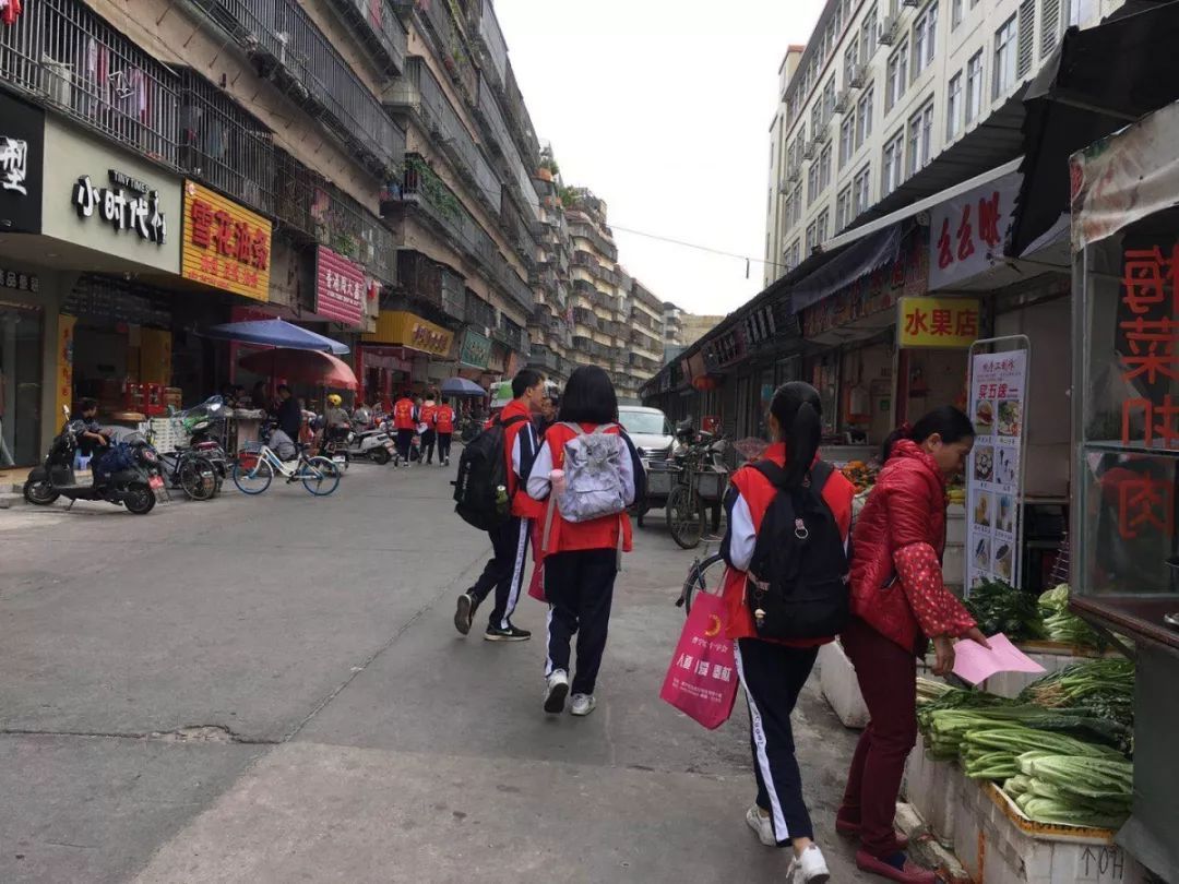 志愿者在流沙东街道溪尾市场、新坛水果市场、中华新城开展宣传