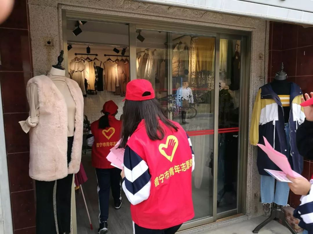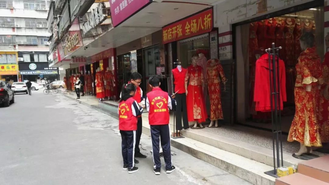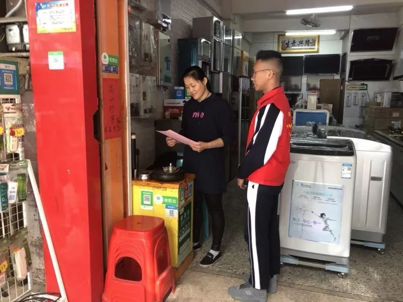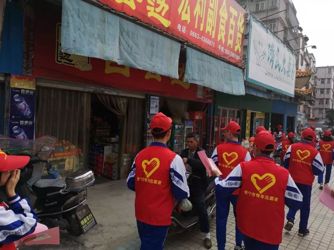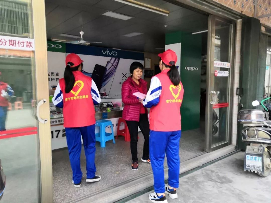 志愿者在流沙南街道泗竹埔翠竹园小区、信安路、安东街、后坛商业街开展宣传