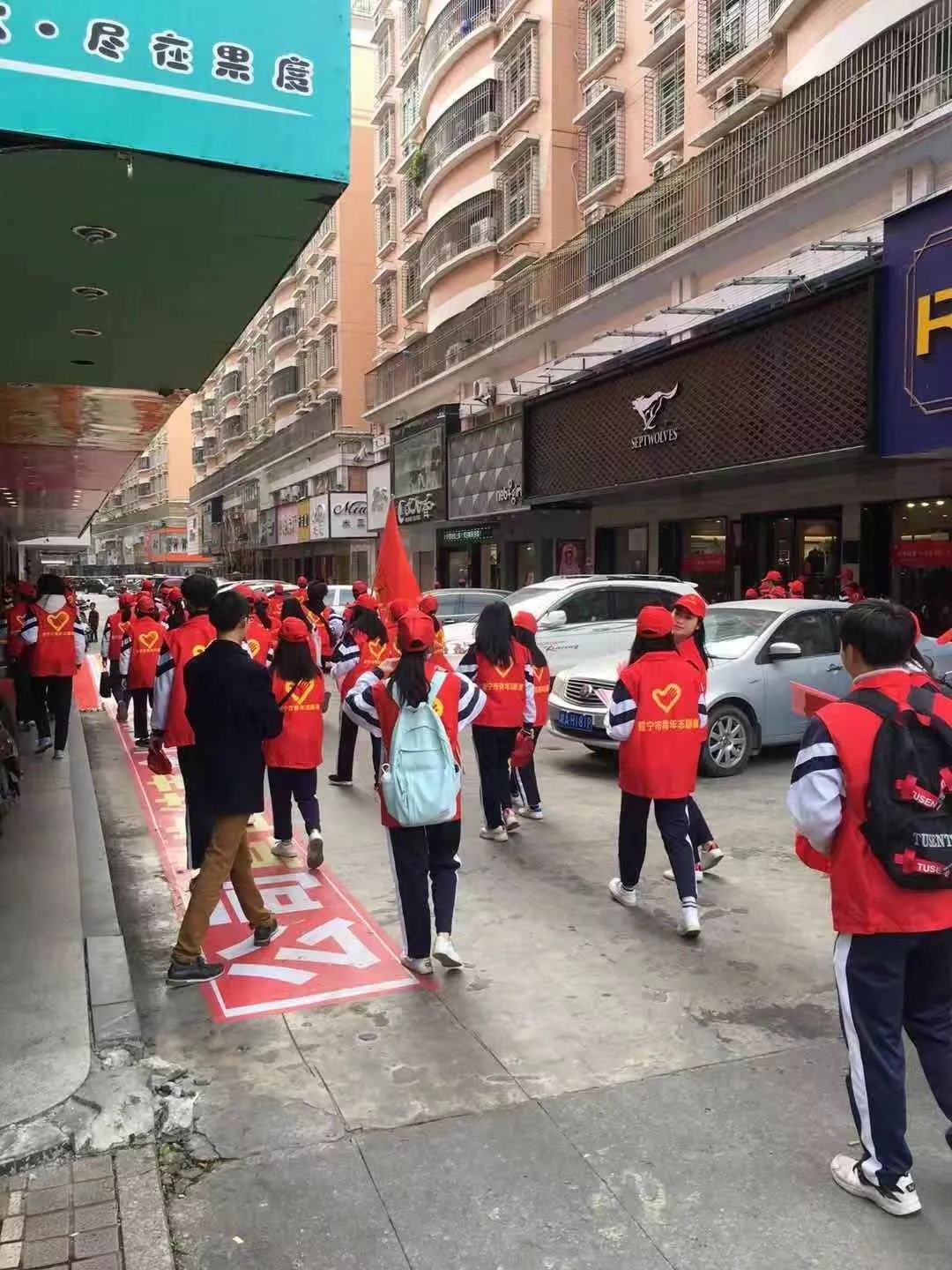 志愿者在流沙北街道御景城一期商业街开展宣传