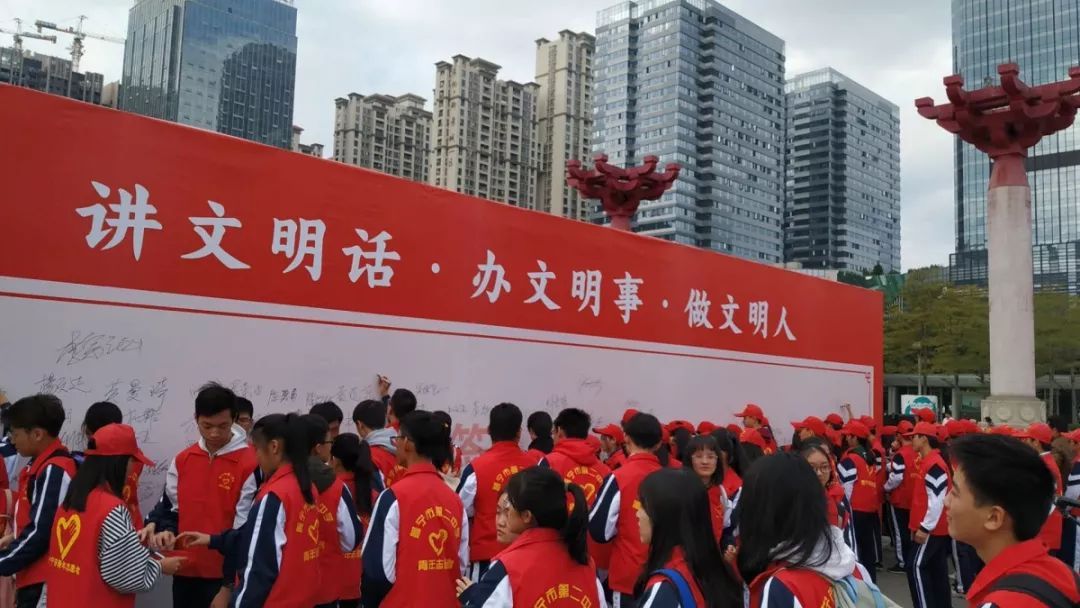 活动首先举行了“说文明话、办文明事、做文明人”承诺签名仪式,全场人员在领誓人的带领下右手握拳,庄严宣誓,并分批在签名墙上签上了自己的名字。