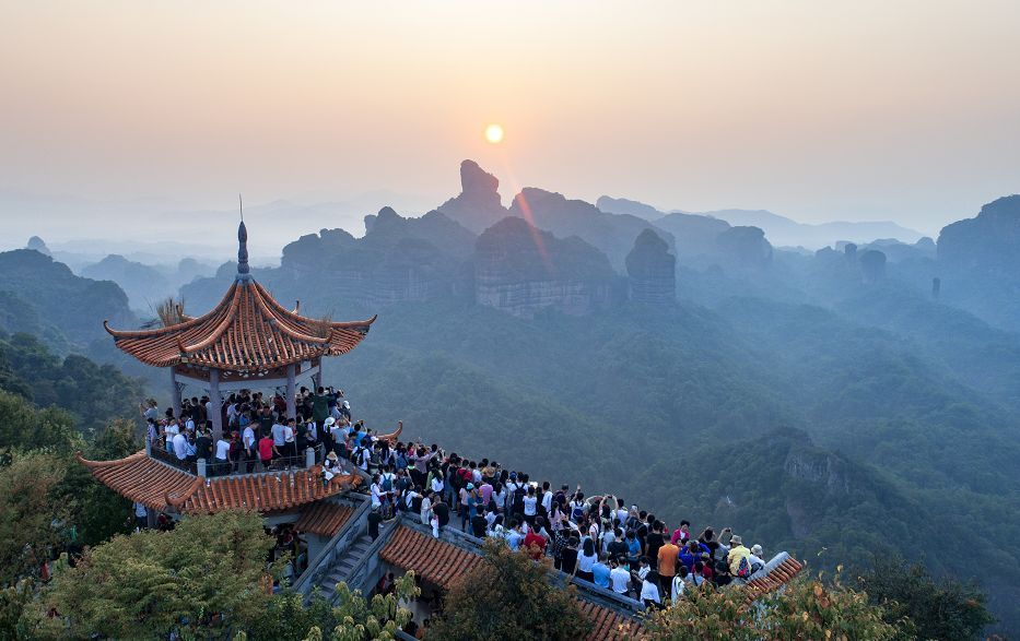 丹霞山又名中国红石公园,位于广东省韶关市仁化县境内,是世界“丹霞地貌”命名地,世界自然遗产和国家AAAAA级旅游景区。景区因“色若渥丹,灿若明霞”而得名,是以丹霞地貌景观为主的自然与人文并重的风景区,也是世界低海拔山岳型风景区的杰出代表。1980年对外开放,2004年被批准为全球首批世界地质公园,2010年8月被联合国教科文组织列为世界自然遗产。