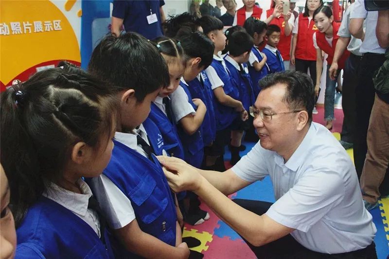 ▲2019年5月30日上午,大鹏新区党工委书记王京东、党工委副书记韩立清来到新区妇幼保健院,为正在接受康复治疗的孩子和大鹏中心幼儿园的小小志愿者们送上六一祝福以及儿童心愿包,并为小小志愿者授予志愿者徽章。