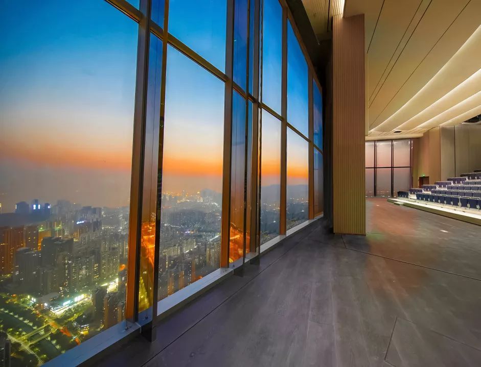 云颂音乐厅坐落于深圳湾1号71楼、350米高湾区之上,三面玻璃幕墙形成的绝佳视野,国际技术标准带来的沉浸式质感,让音乐厅的高规格不可复制。
