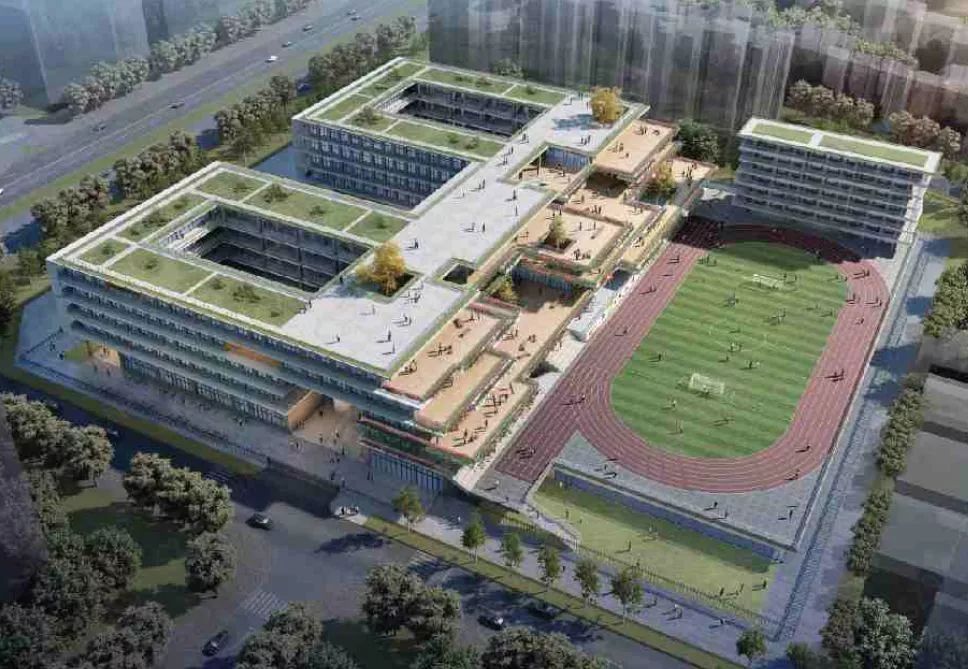 办学规模为初中42班/2100学位的中学。主要建设内容包括3层的地下室、5层的教学楼,11层的生活服务楼,风雨操场等。项目总投资约3.4亿元。