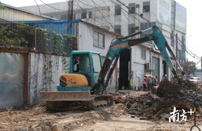 “新基工业大道人行道地下原有排水管使用多年,管道陈旧,已无法满足使用需求,需要重新更换铺设。”现场施工负责人表示,“由于地下管道、线路错综复杂,施工难度大,技术要求高,无法完全使用大型机械进行开挖,只能依靠人工开挖为主,同时使用机械辅助施工。”