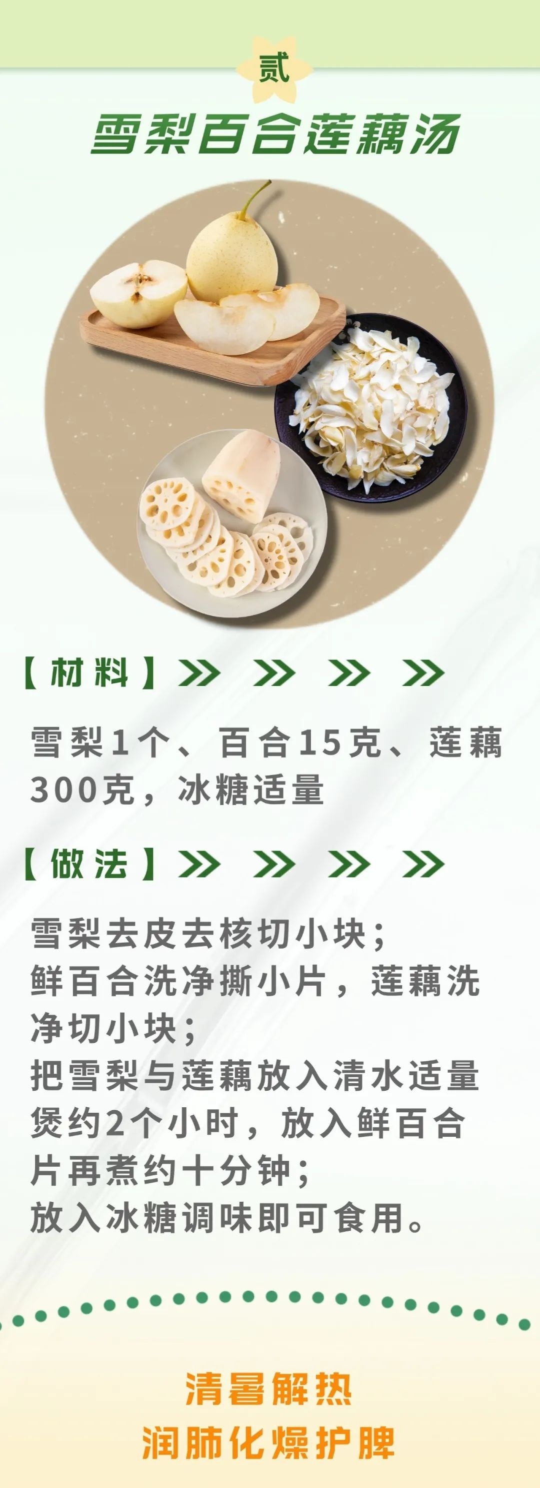 此外,处暑节气适宜食清热安神的食物,如银耳、百合、莲子、蜂蜜、黄鱼、芹菜、菠菜、糯米、芝麻、豆类及奶类,适当煮些绿豆汤、绿豆冬瓜汤、绿豆百合粥、绿豆薏米粥等,也是不错的选择。