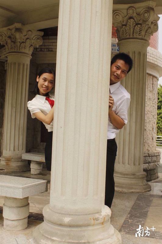 这对爱人均为省实珠海学校新招化学老师。工作前他们两人经历了7年的爱情长跑,工作后在培训前一天领证结婚,成为有证的爱人。