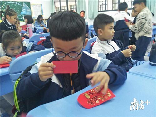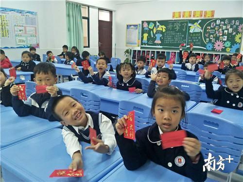 开学第一天,同学们领到老师发给的红包,笑逐颜开。红包里装的不是钱,是一张写上了老师新年祝福的小纸条,寄语孩子们快乐成长!