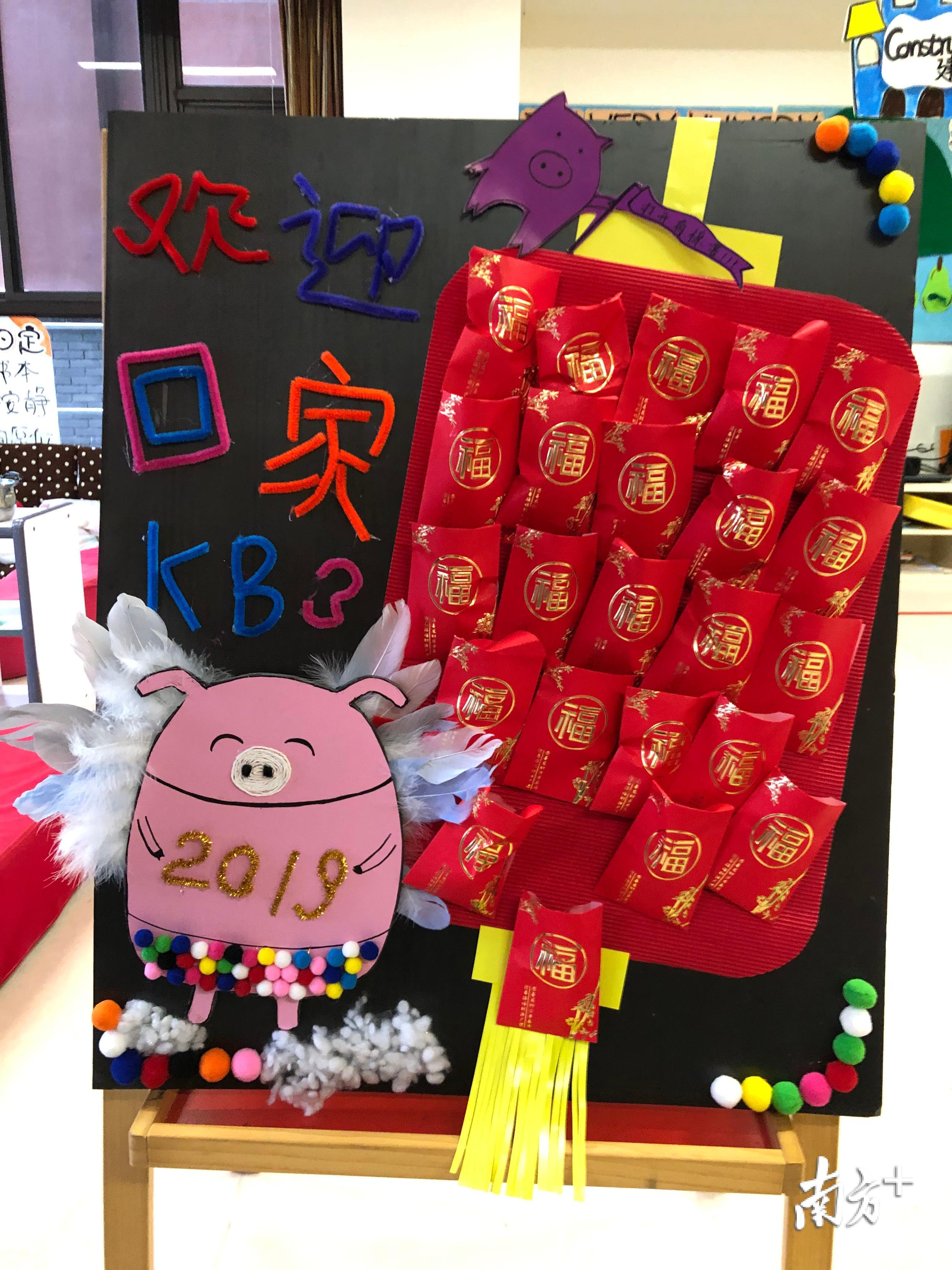 “小猪佩奇”来到了校园,亲切地和宝贝们互动。写着“欢迎小朋友”的电子屏、火红的灯笼和各种手工制作的小猪,把校园的气氛烘托得热闹又喜庆。园长妈妈给每位孩子送上了装有甜甜糖果的利是,家长们在心形纸片上写下了给孩子的新年祝福。