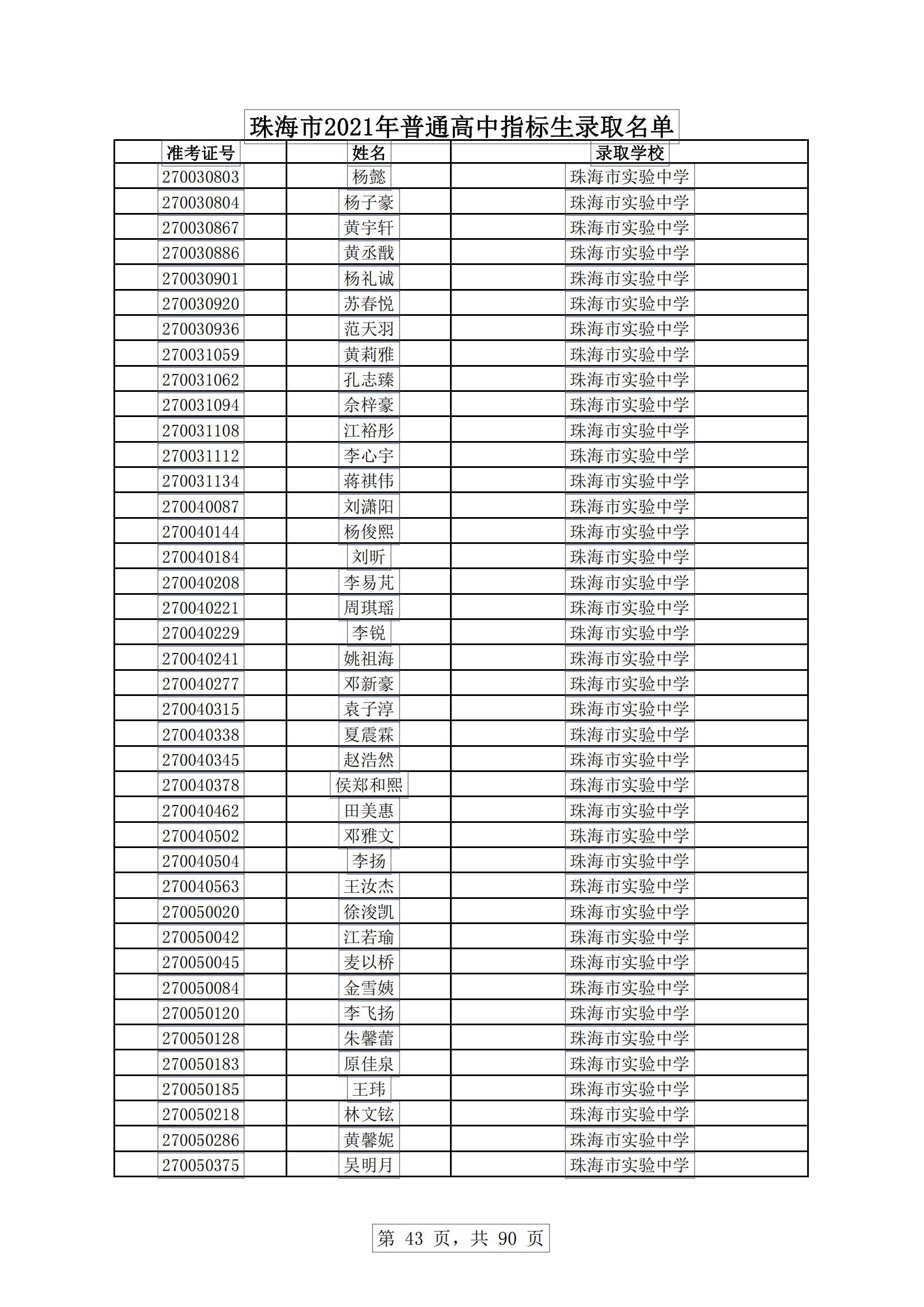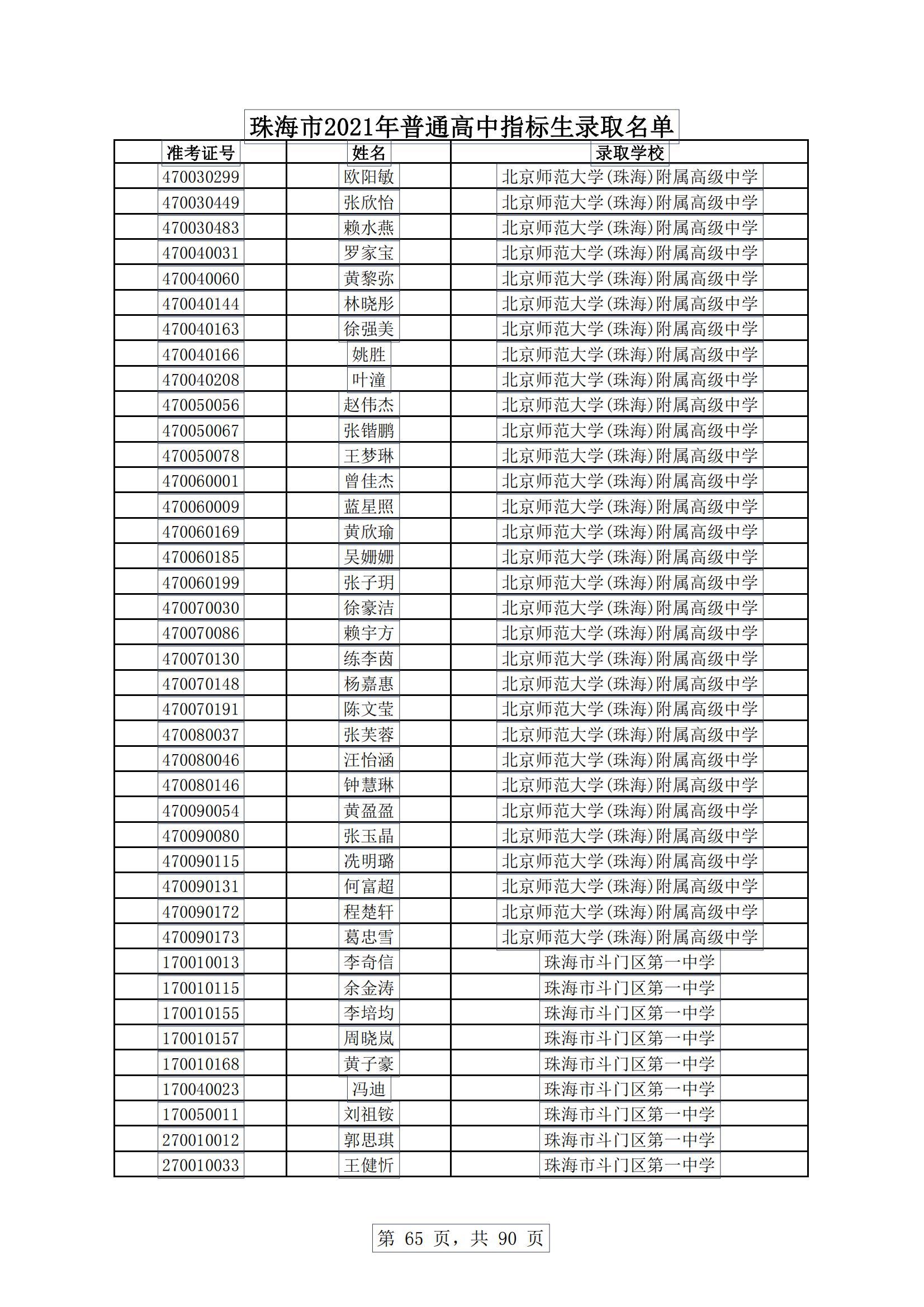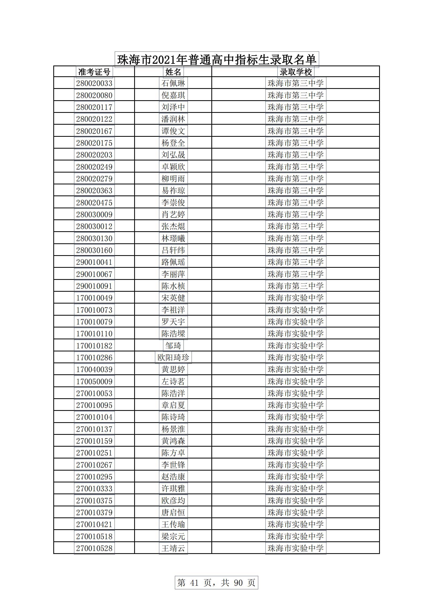 今天,珠海市教育局发布消息,根据《珠海市2021年初中学业水平考试与高中阶段学校招生工作实施细则》,现将珠海普通高中指标生录取名单进行公示。