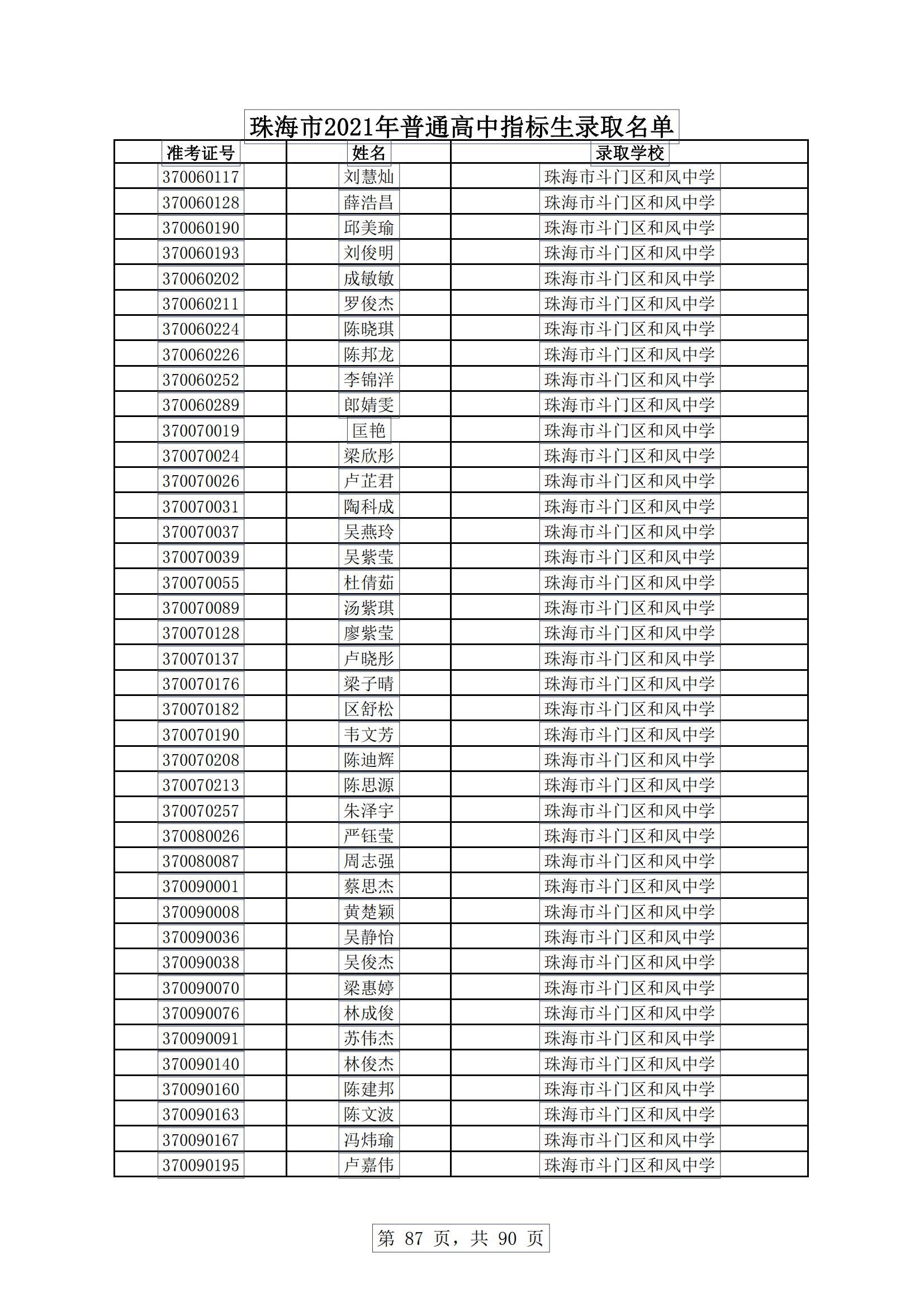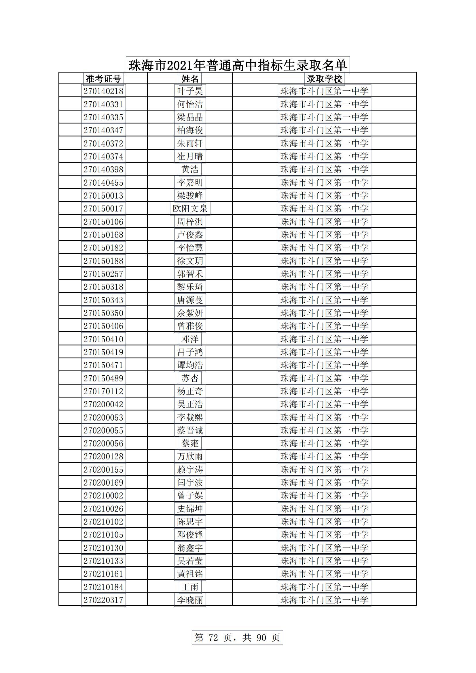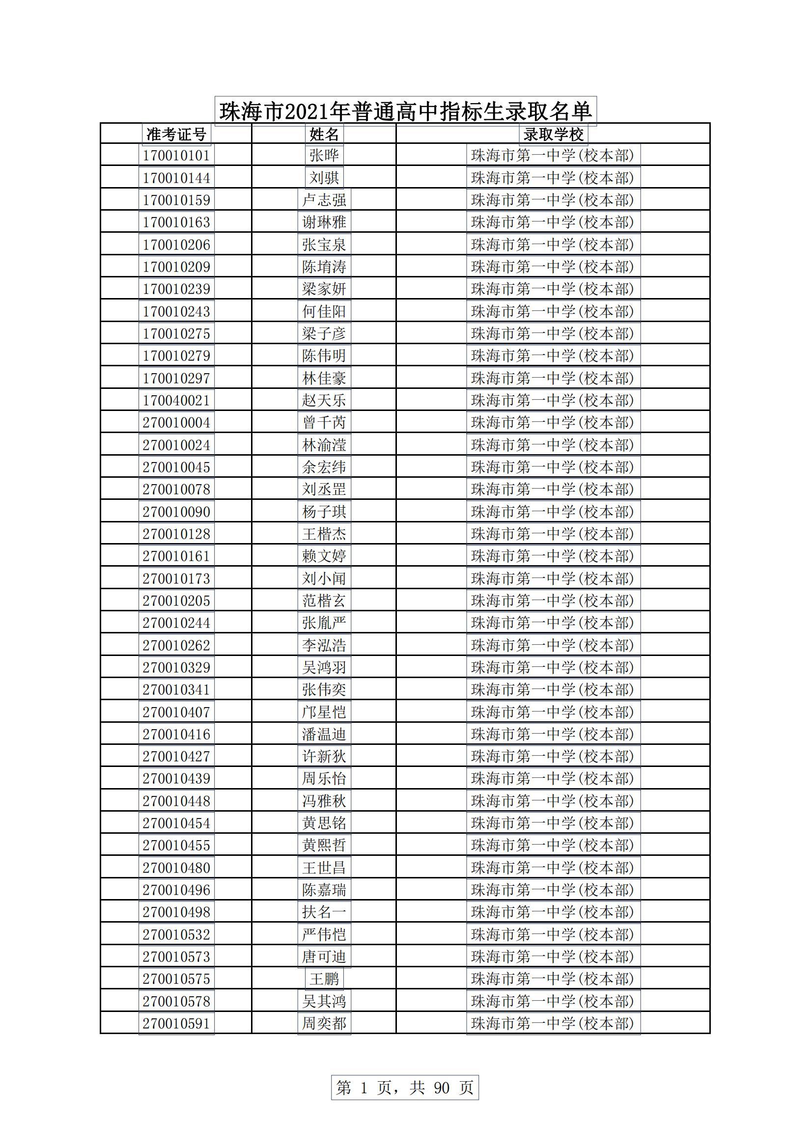今天,珠海市教育局发布消息,根据《珠海市2021年初中学业水平考试与高中阶段学校招生工作实施细则》,现将珠海普通高中指标生录取名单进行公示。