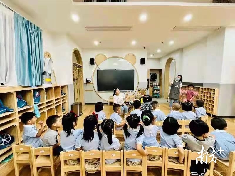 据横琴子期幼儿园园长徐瑞雪介绍,幼儿园配班老师有“三教一保”,且班级内的3名老师、1名保育老师按月互换角色(四教轮保),方便大家熟悉各环节工作并能做到相互理解共同合作。幼儿园以1:100的标准配置园医,园医人数较多,可更好保障园内师生健康。